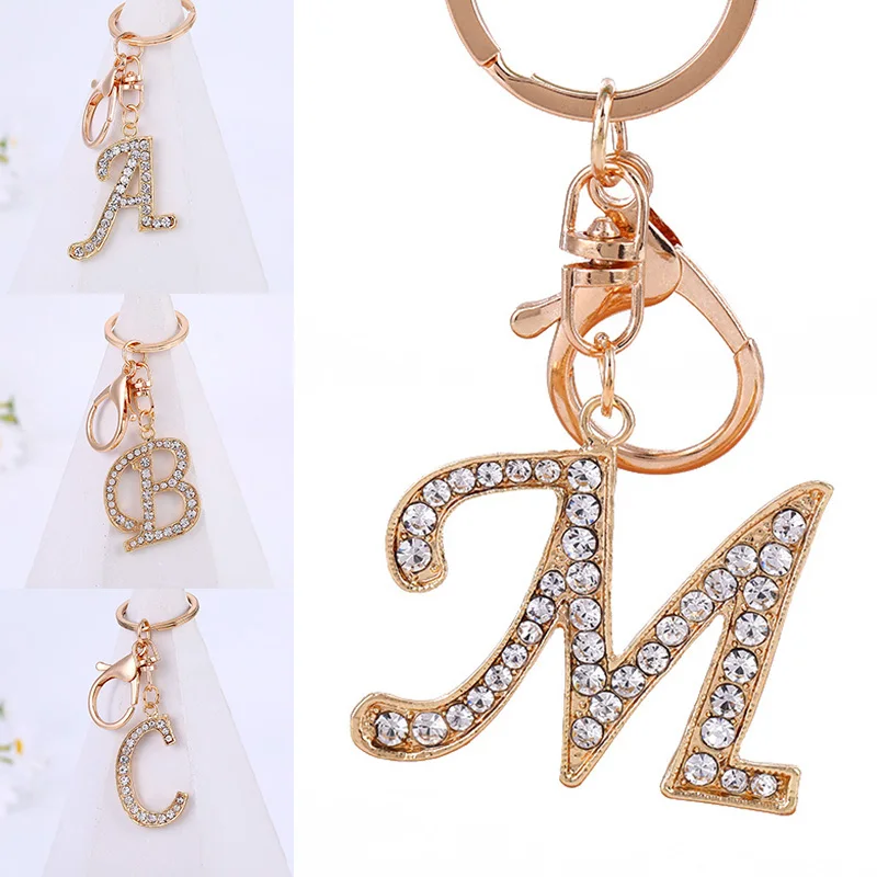 Подвеска в виде букв Стразы с кристаллами, кольцо для ключей с алфавитом, подвеска в виде букв английской столики, ювелирная цепочка в стиле унисекс, брелок для ключей с бриллиантами