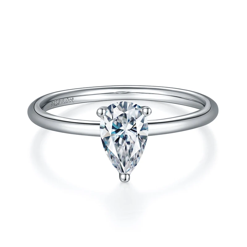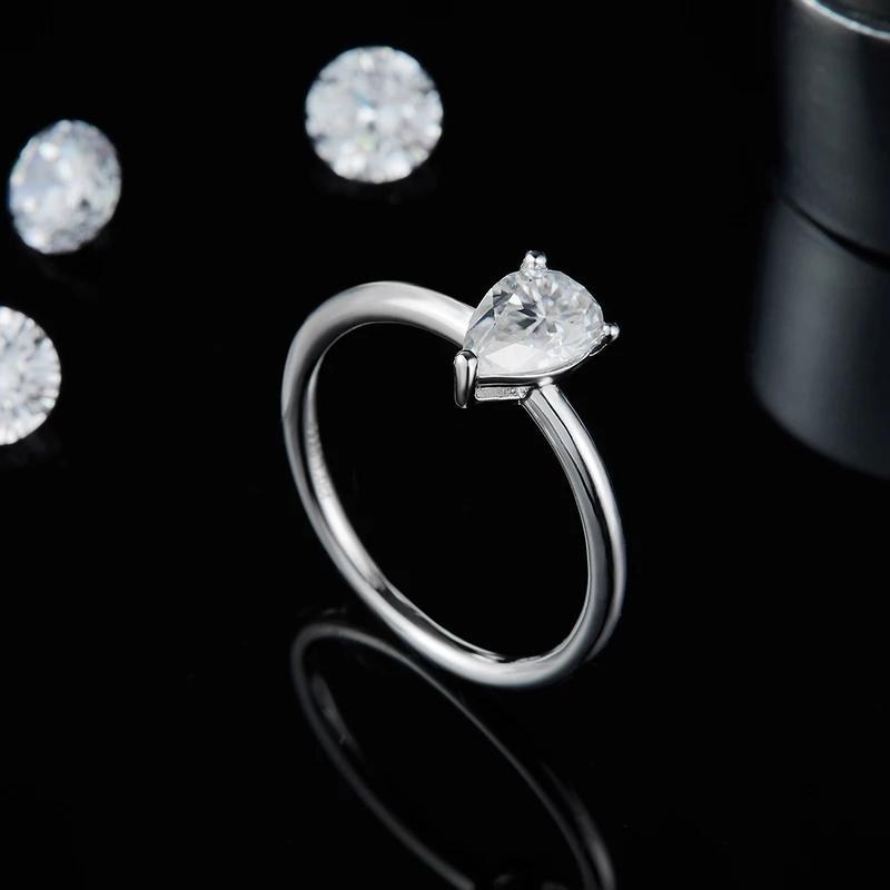 *** Примечание: Муассанит грушевой огранки 1ct 5*8 мм, цвет F VVS1. Пожалуйста, подтвердите свой размер кольца и выберите правильный размер.