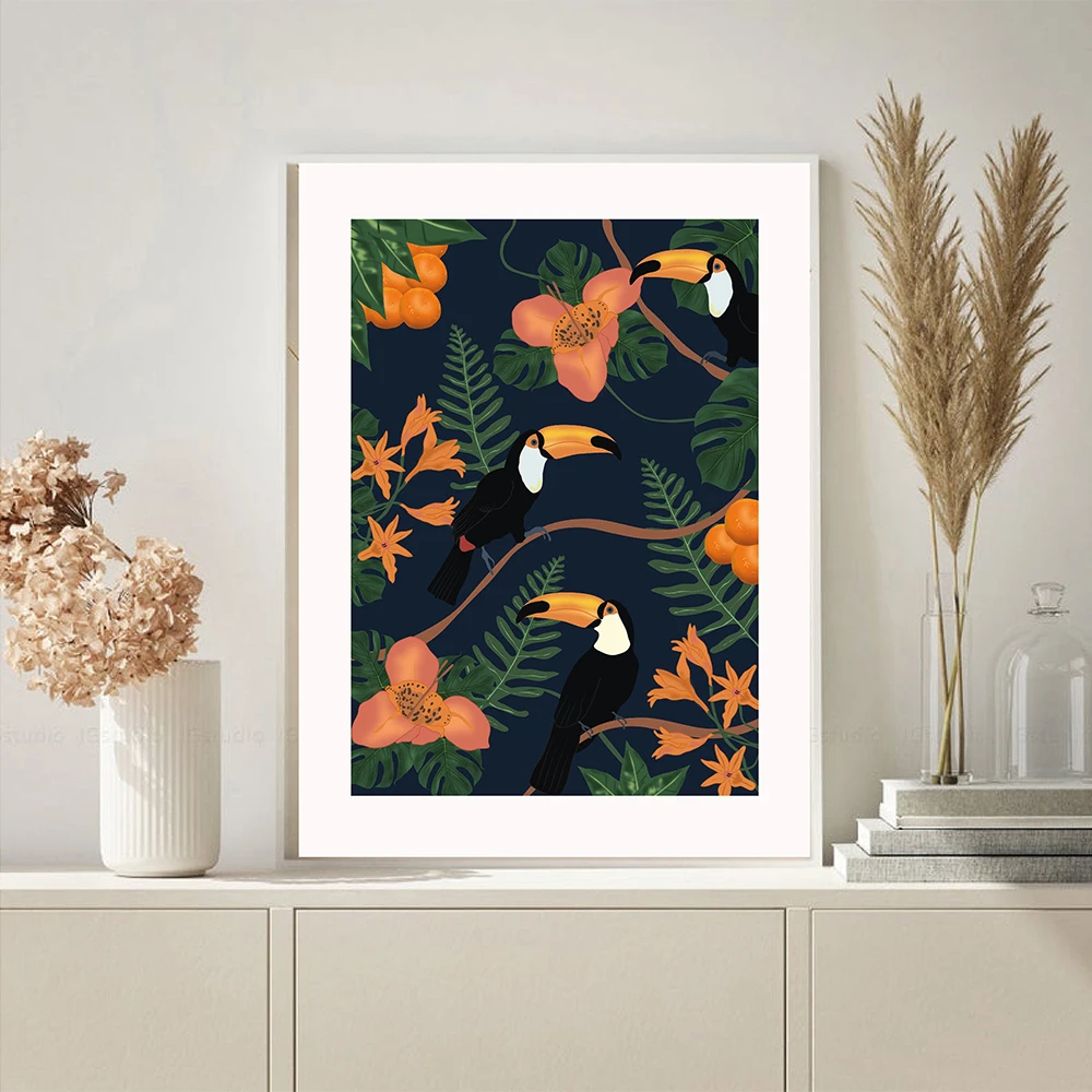 Настенная Картина на холсте с тропическим принтом тукан, модульные постеры с леопардовым принтом и джунглей в скандинавском стиле, украшение для гостиной