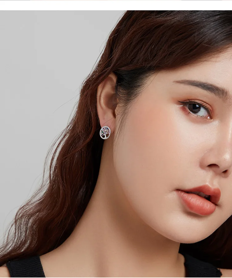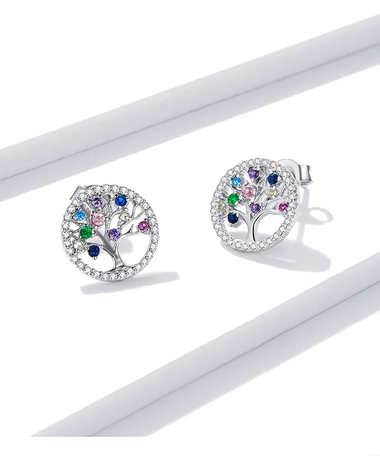 Женские Разноцветные серьги-гвоздики из серебра 925 пробы с радужным деревом жизни, ювелирное изделие CTE497