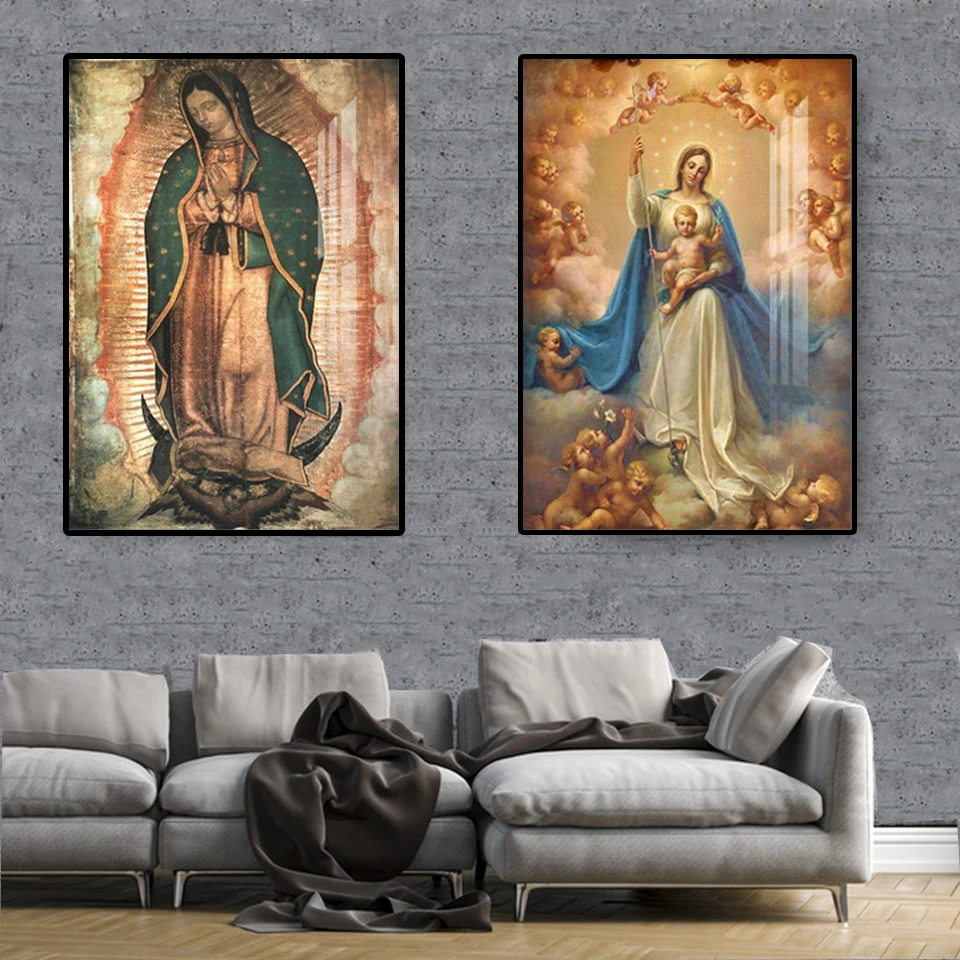 Дева Мария, искусство, картина маслом, мадам гуаделуп, холст, печать, плакаты и принты, церковь, современное Украшение стен для дома