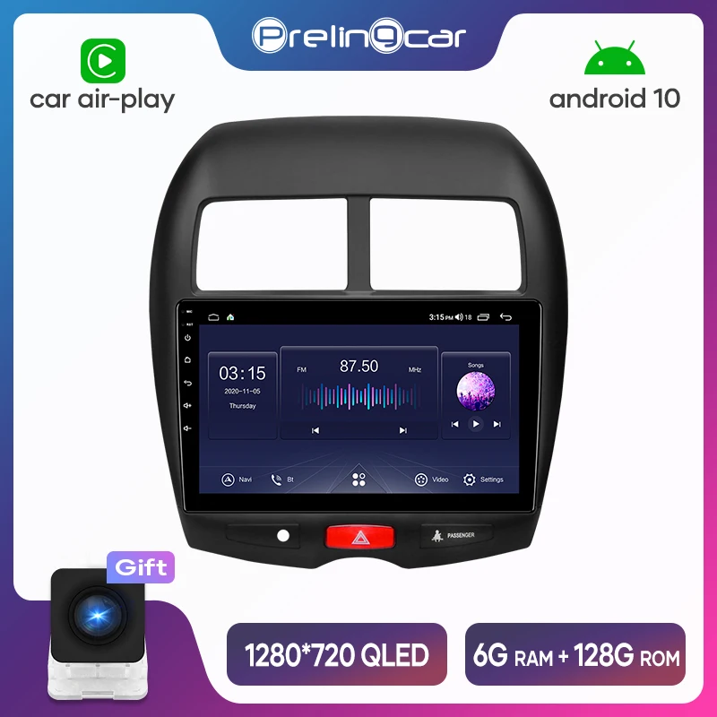 Автомагнитола Prelingcar для Mitsubishi ASX 2010-2016, Android 10, стереоприемник, видеоплеер, мультимедийная навигация, GPS, разъем 2 Din, Dvd