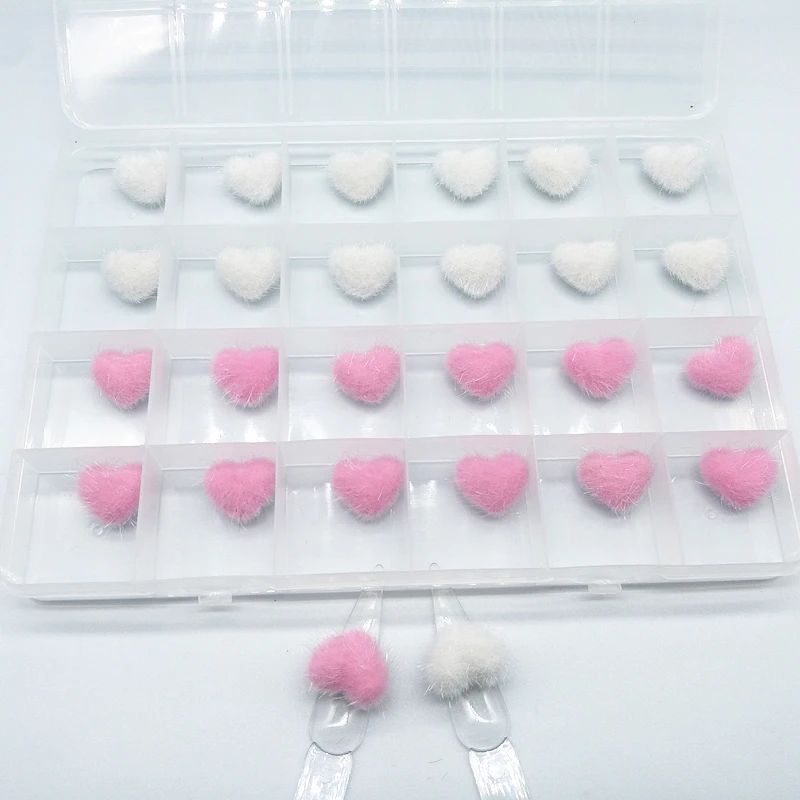 24 шт., летние пушистые Помпоны в форме сердца, 3D украшения для дизайна ногтей, съемные магнитные модные аксессуары для дизайна ногтей «сделай сам»