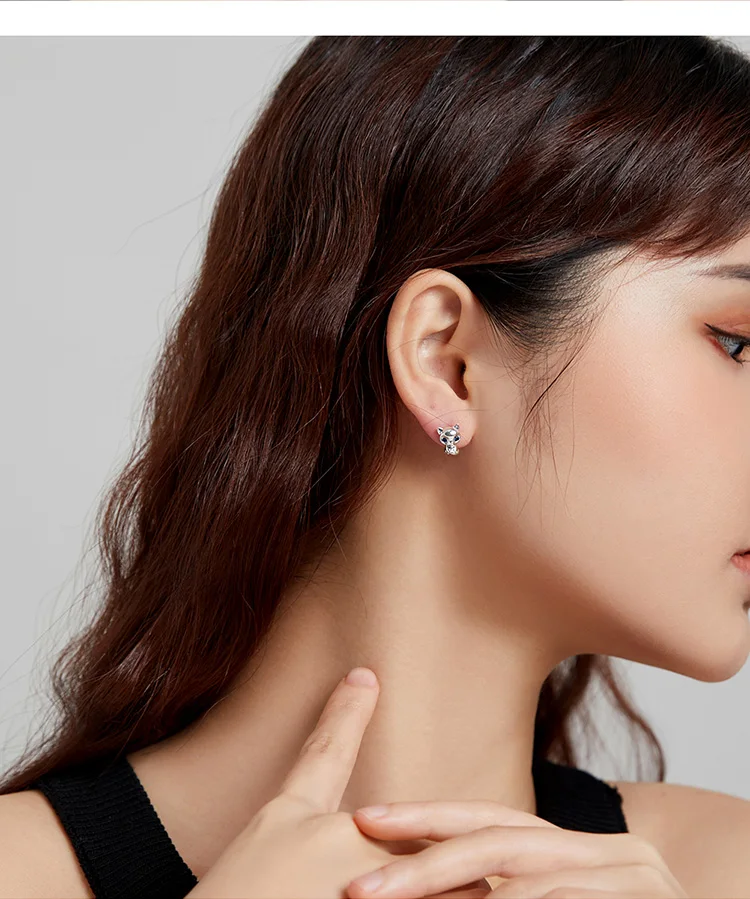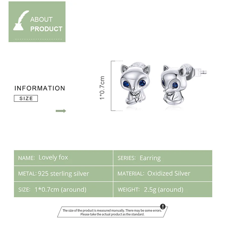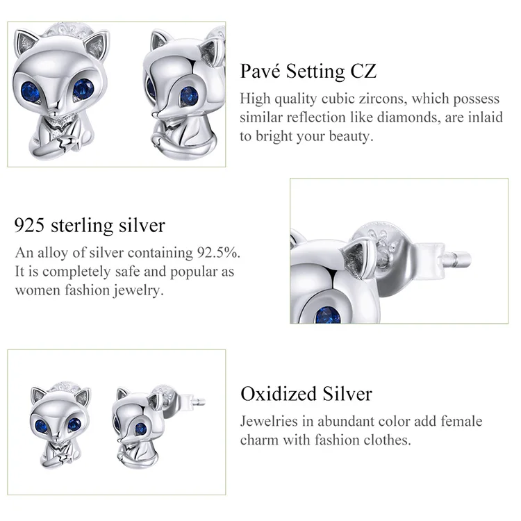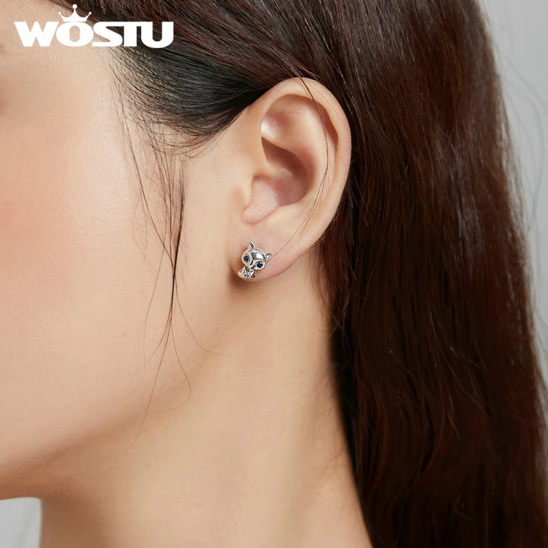 WOSTU Настоящее 925 стерлингового серебра милые серьги-гвоздики в виде лисы животных серьги для женщин модные серебряные ювелирные изделия CQE1084