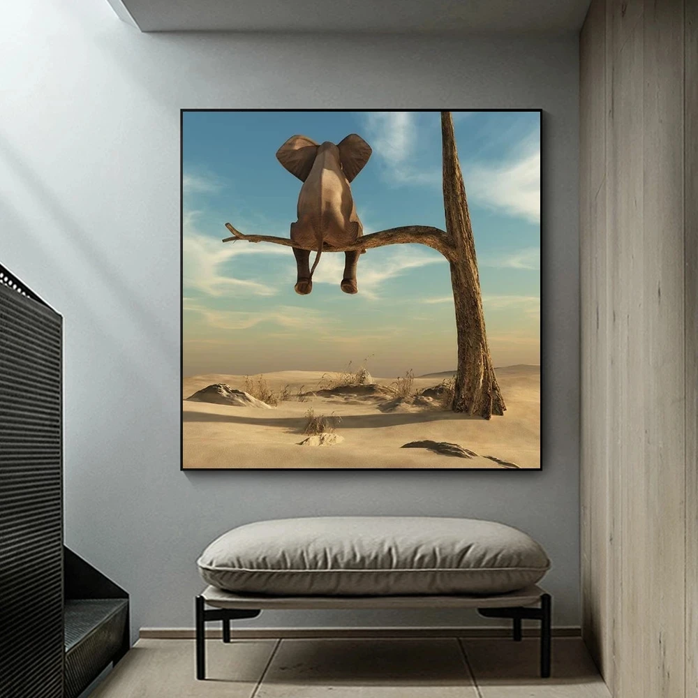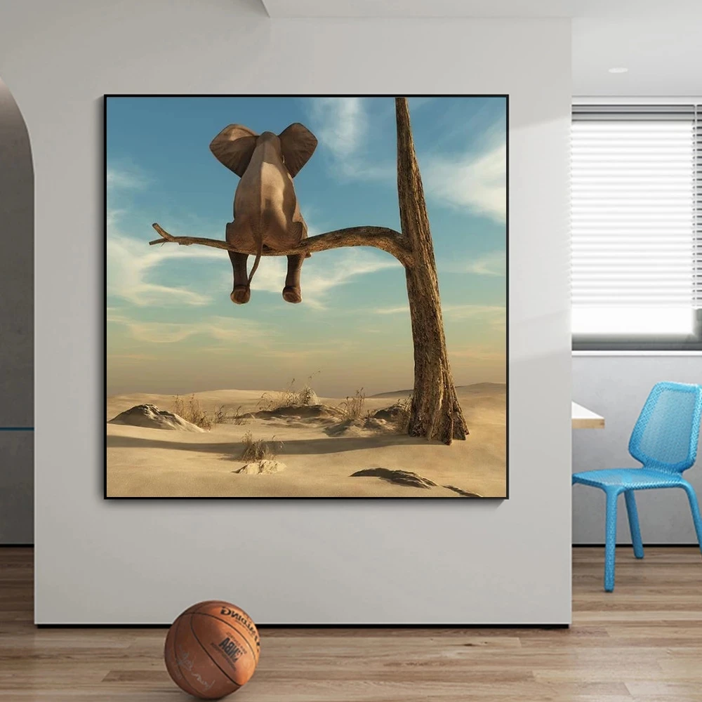 Картина на холсте с изображением слона, сидя на ветке, современные животные, художественные плакаты и принты, настенные картины для гостиной, домашний декор