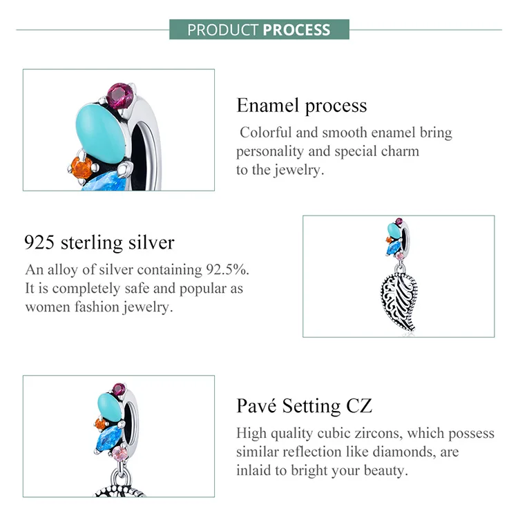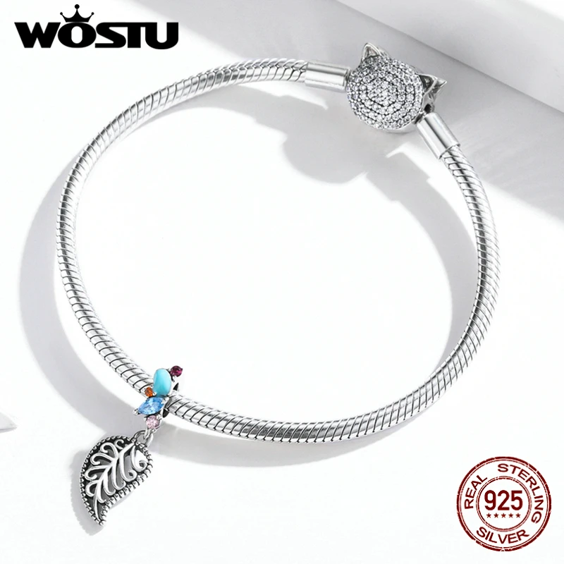 WOSTU 925 стерлингового серебра Подвески богемный лист из бисера Красочные Подвесные соответствуют оригинальному браслету ожерелье для женщин ювелирные изделия CTC455