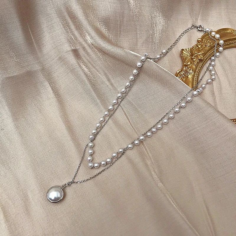 Модное жемчужное ожерелье-чокер для женщин, милая двухслойная цепоч...