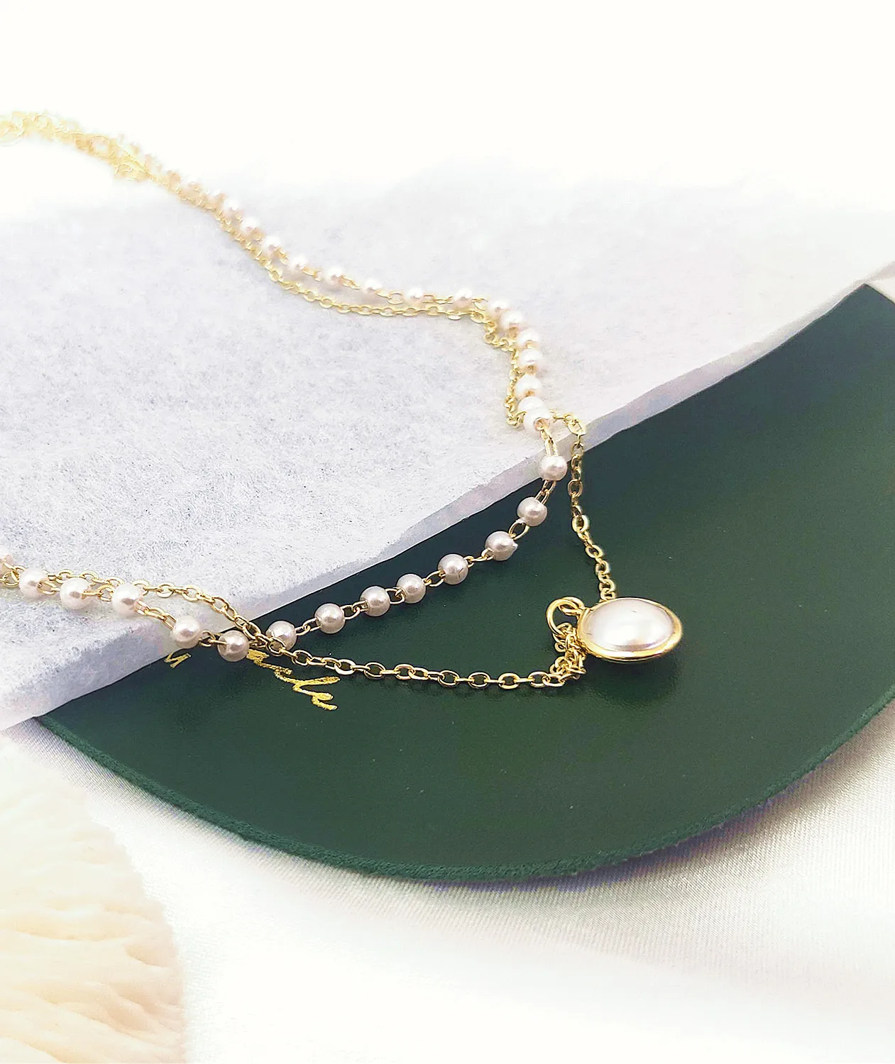 Ожерелье женское Двухслойное с жемчужными бусинами, цепочка на шею,...