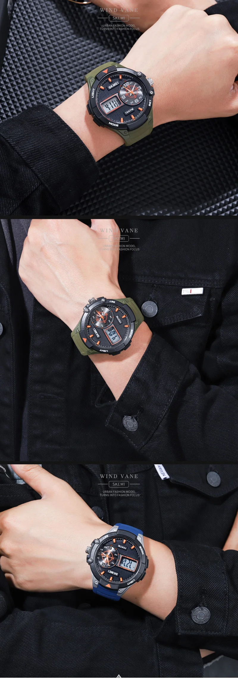 SKMEI спортивные часы мужские кварцевые цифровые часы Креативный двойной мужской водонепроницаемый светодиодный наручные часы Relogio Masculino 1761 Montre Homme
