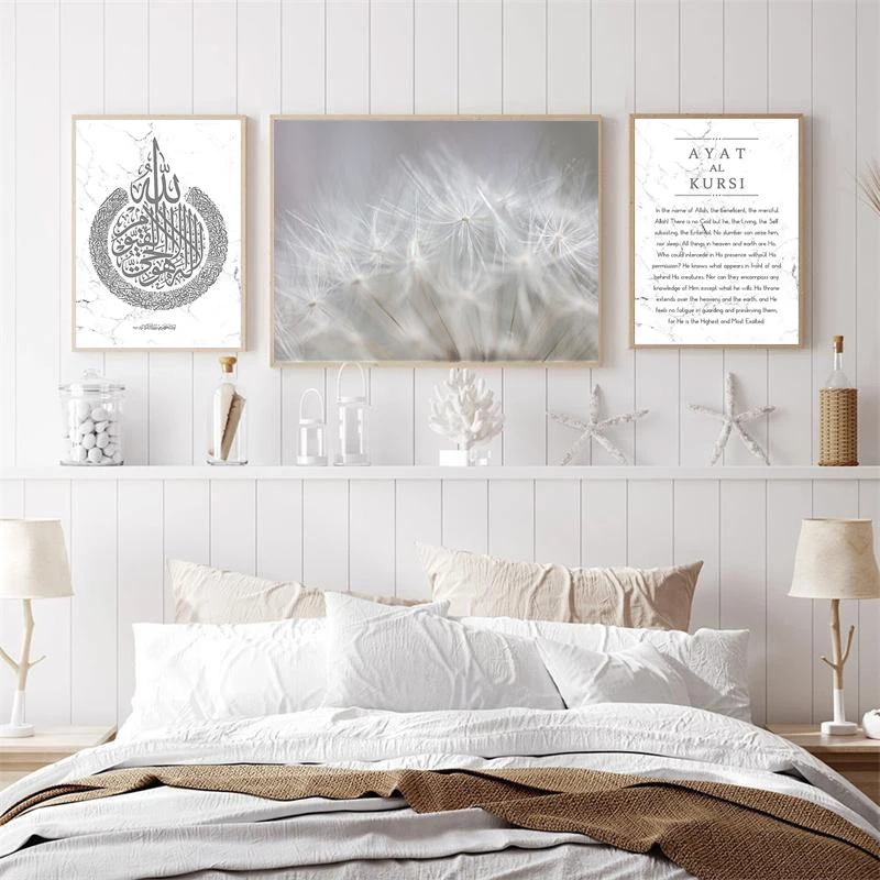 Современное искусство стены исламской каллиграфии айат аль-Kursi Коран Мрамор фотографии холст картина, печатный плакат Гостиная домашний декор