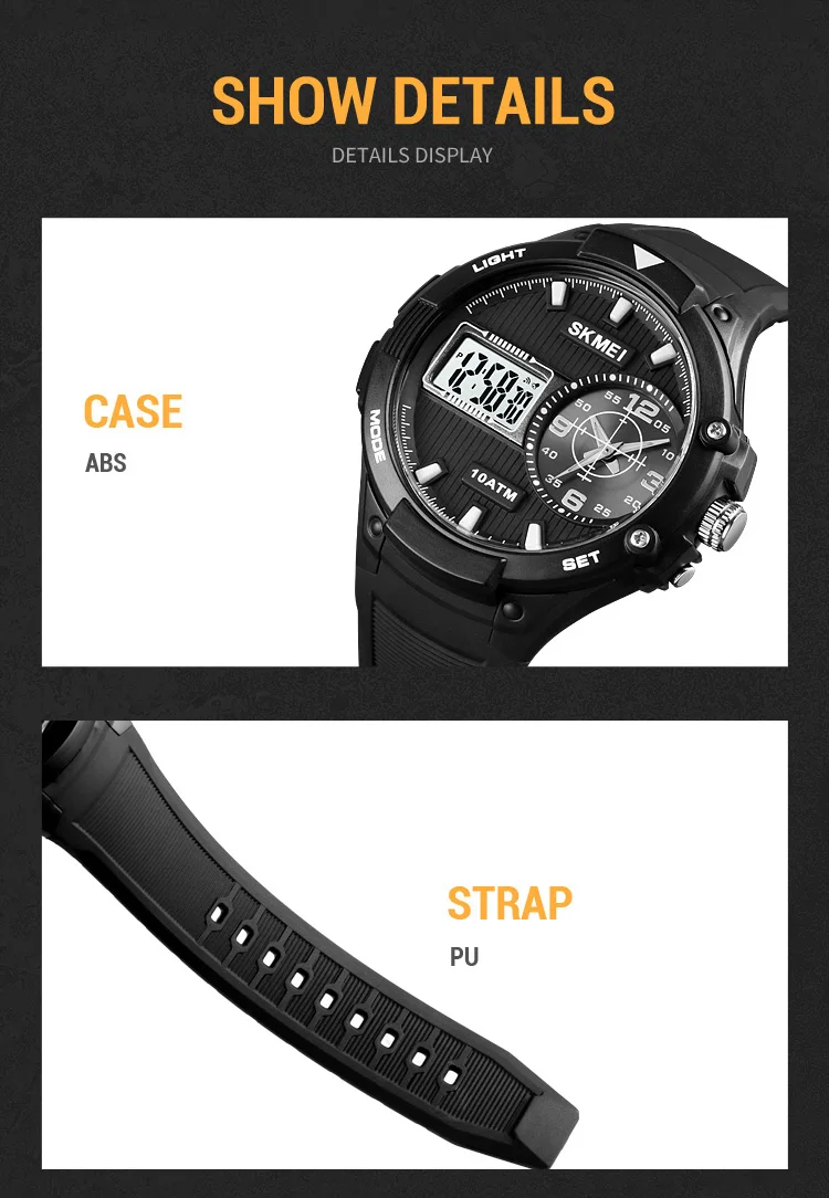 SKMEI Dual Time 10ATM водонепроницаемые часы с большим циферблатом ...