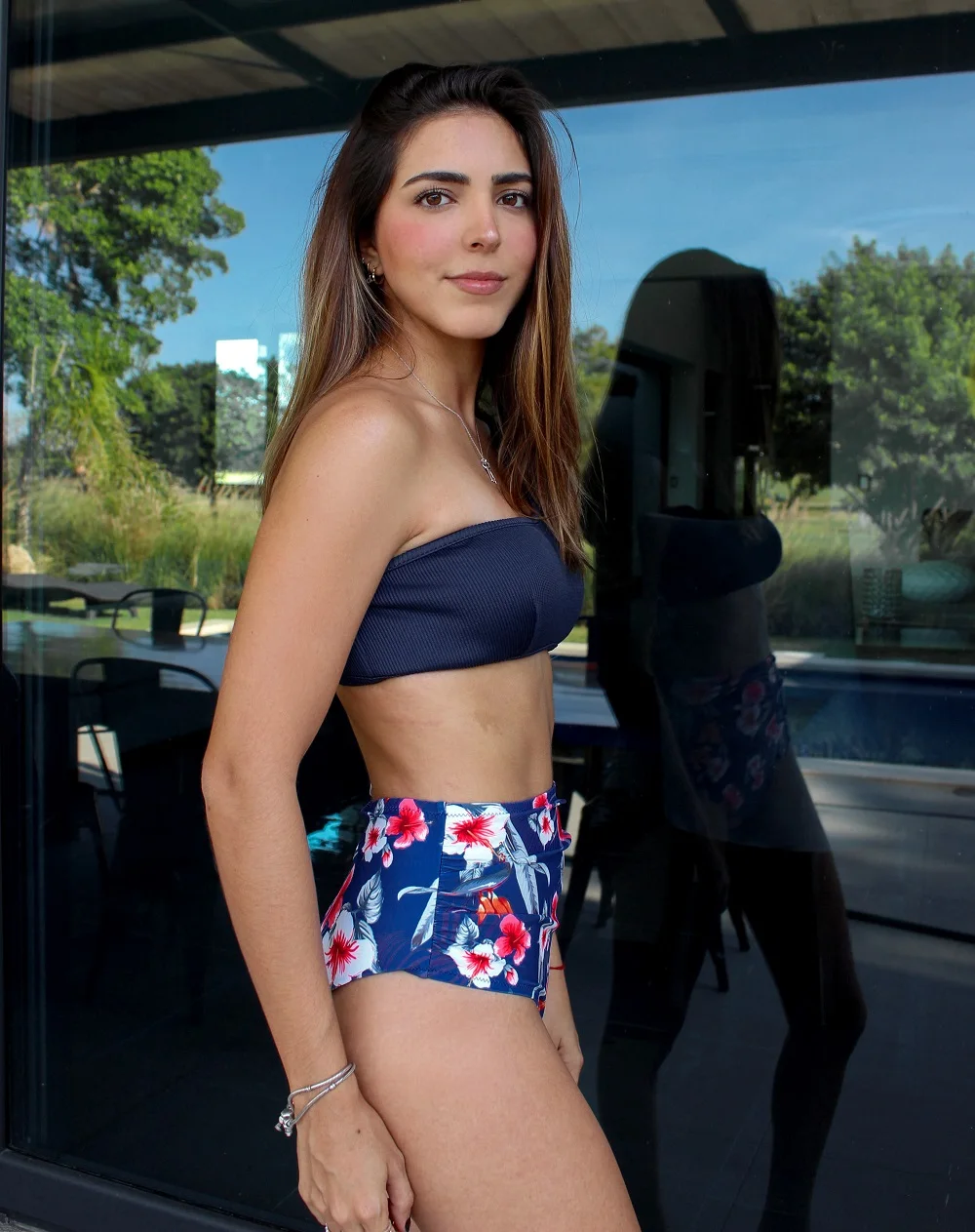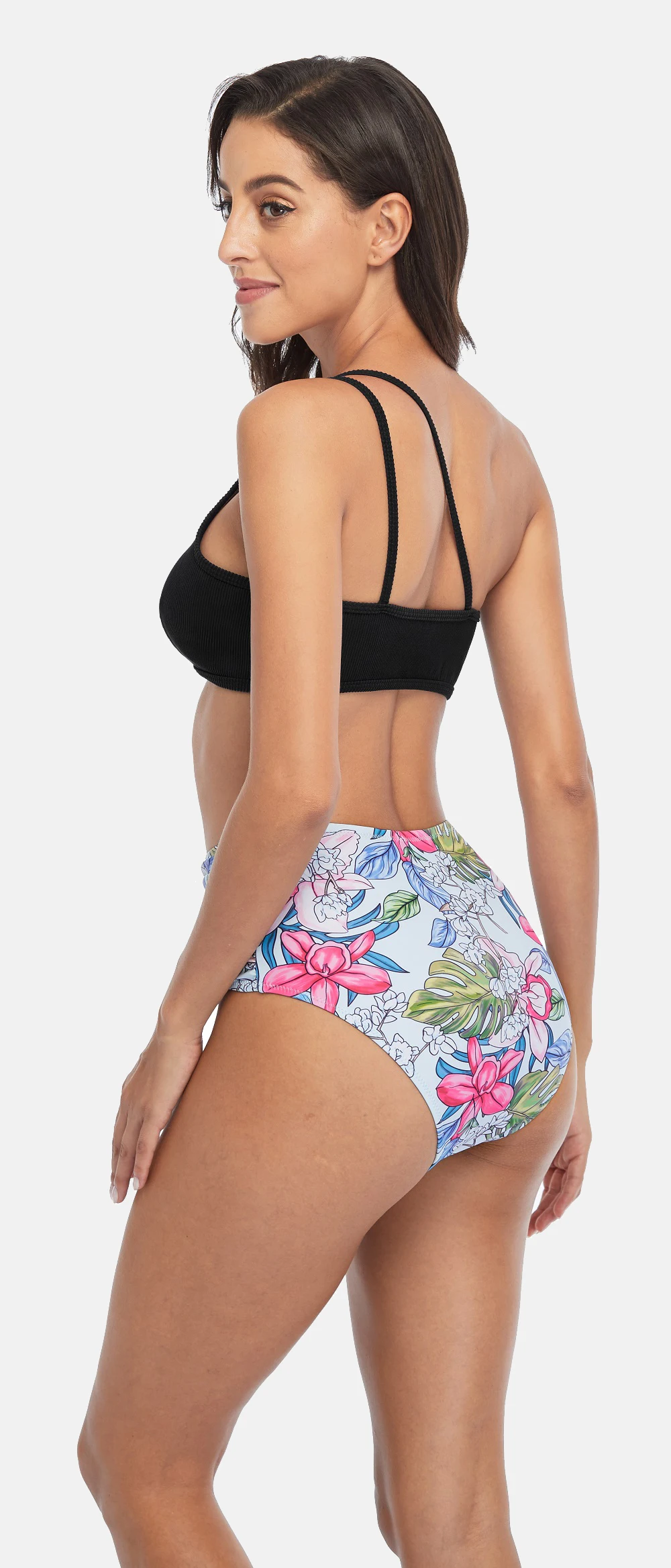 Женский купальник бикини с цветочным принтом и лямкой на шее