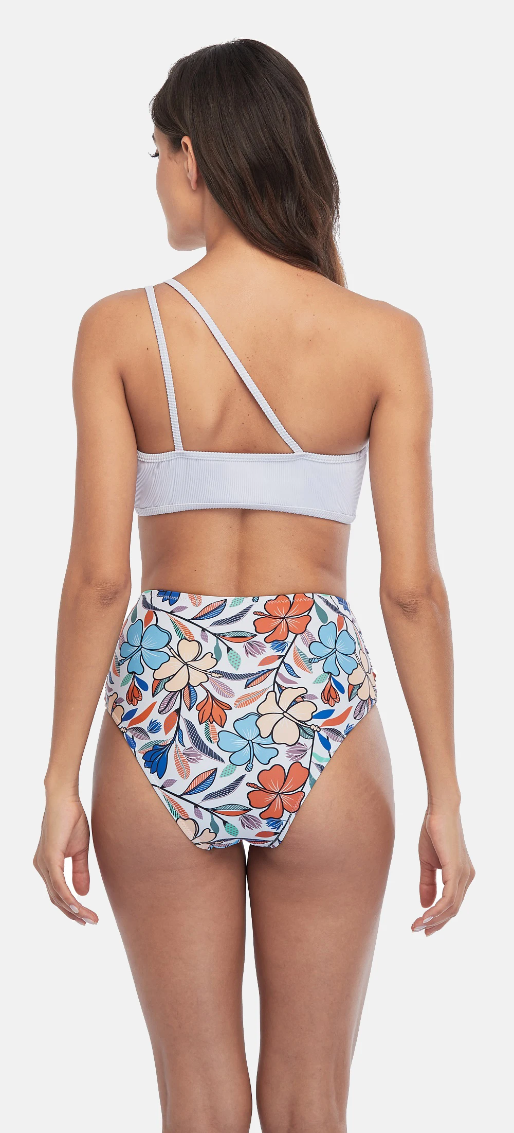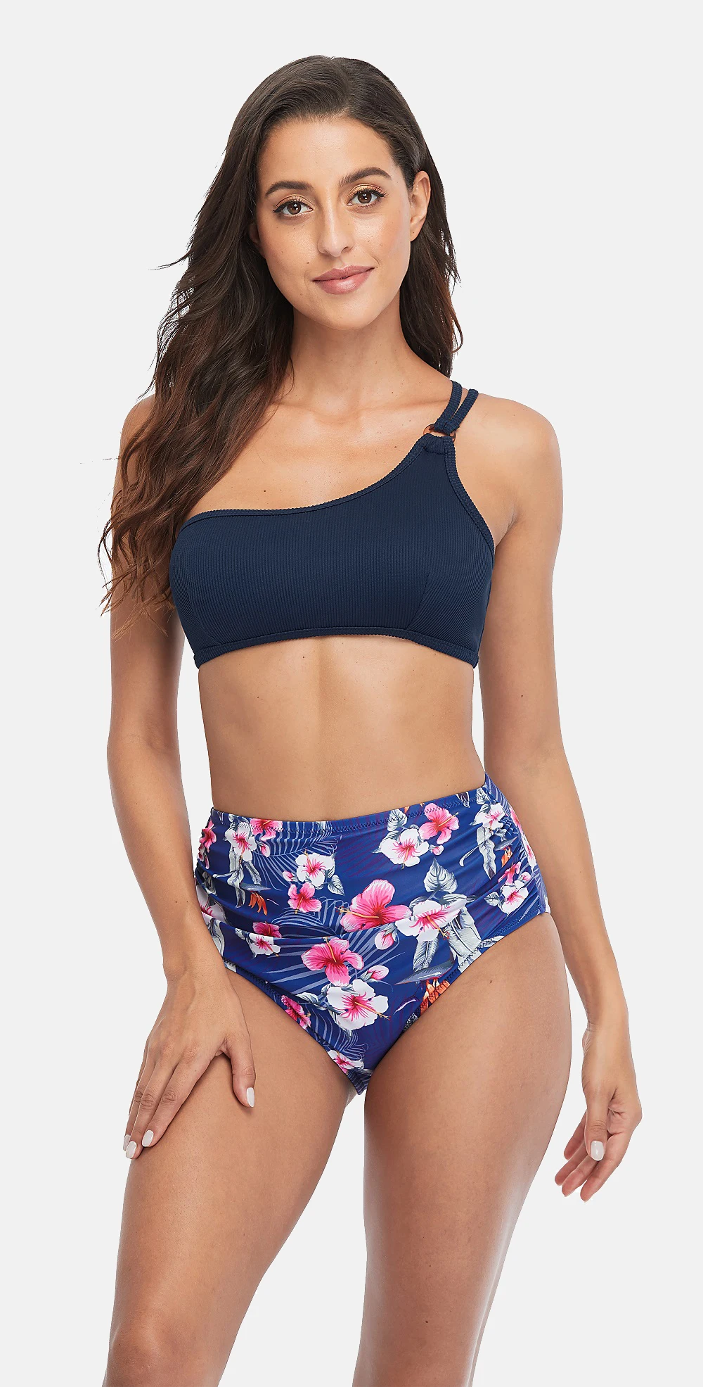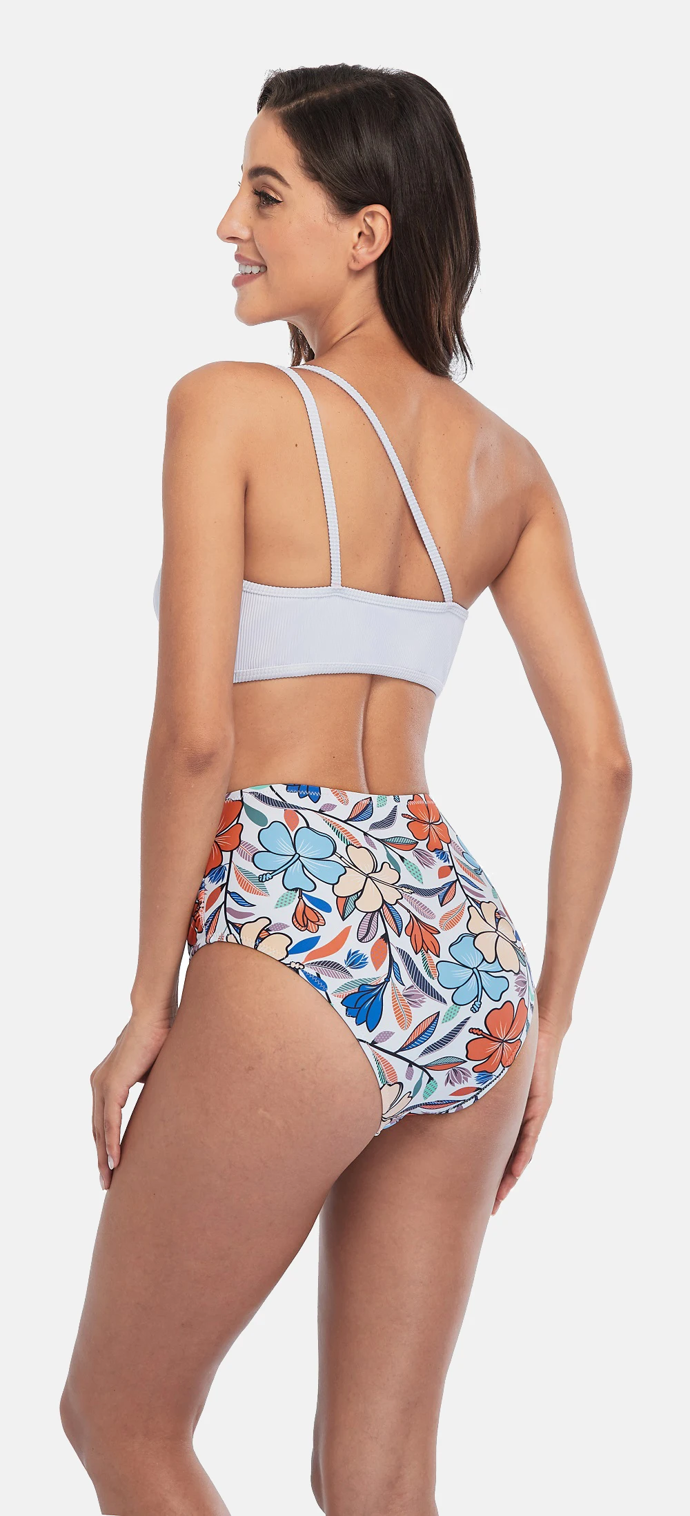 Комплект бикини Anfilia, купальники для женщин, на одно плечо, с цветочным принтом, из двух частей, ребристый купальный костюм с высокой талией, купальник