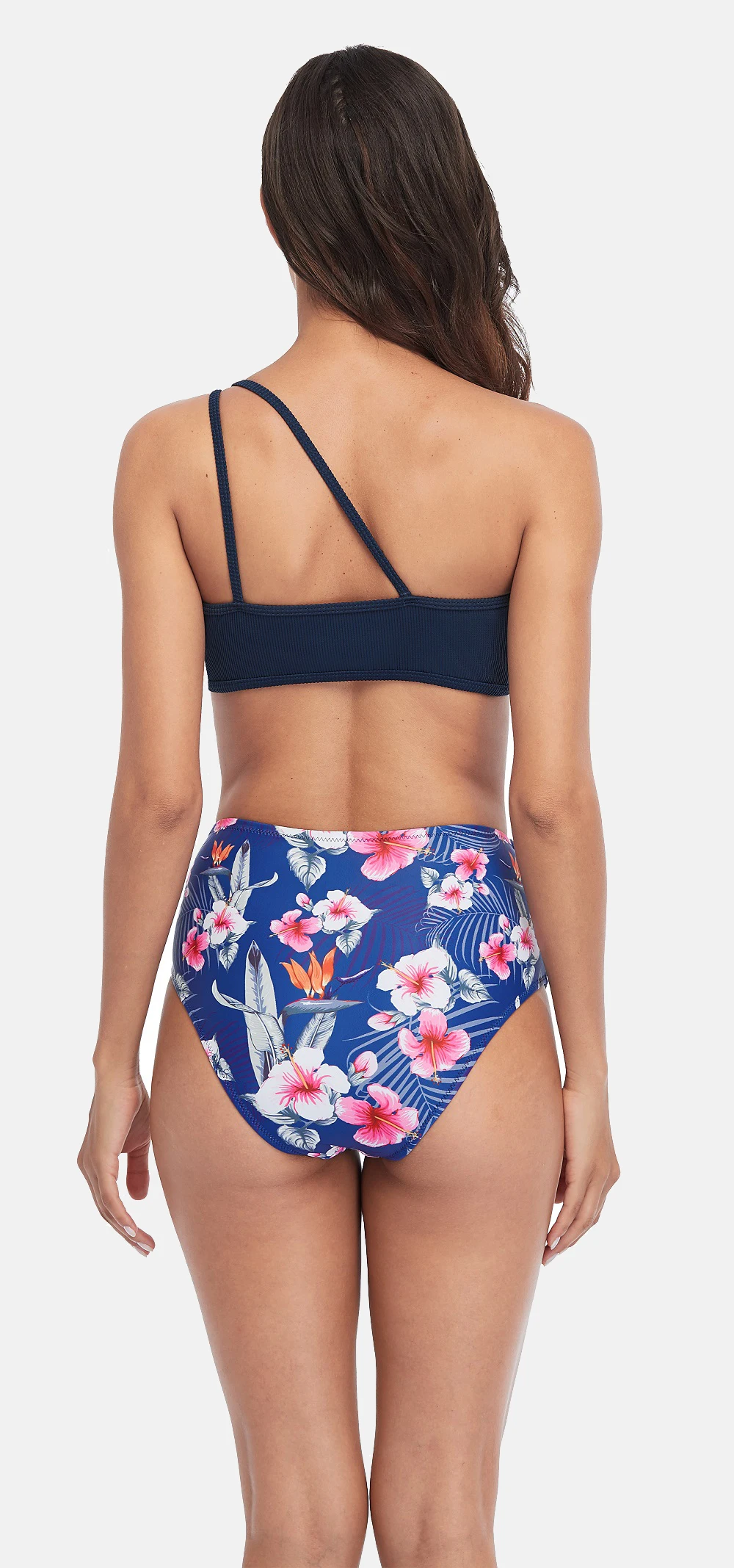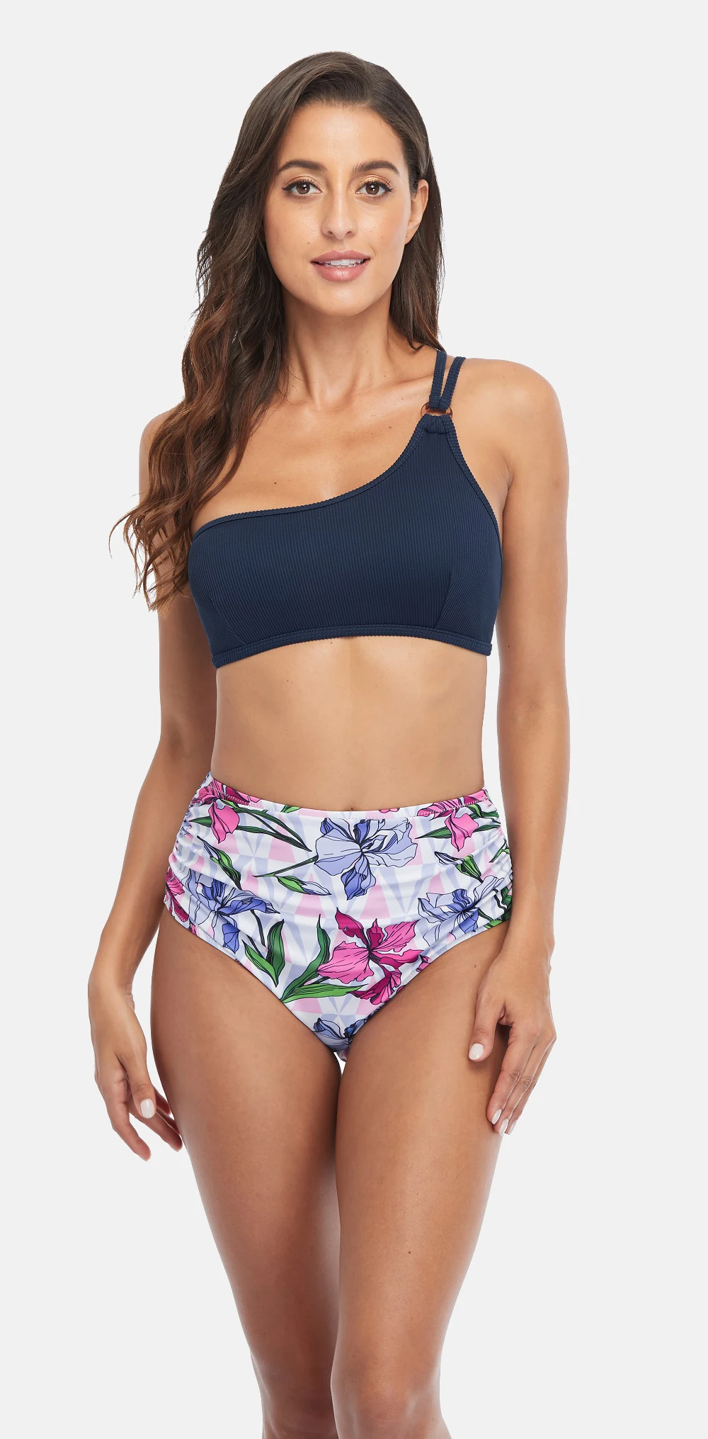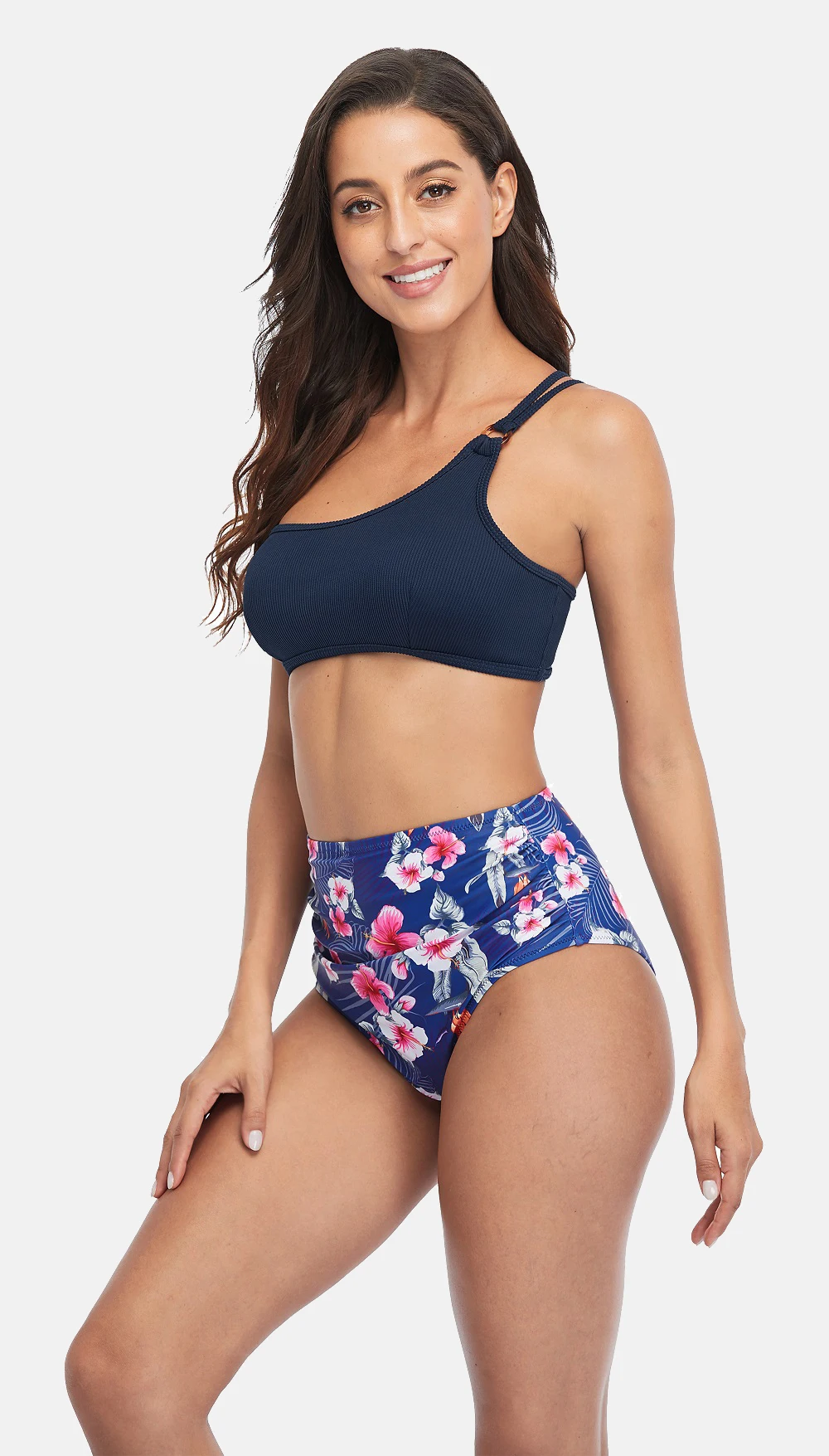 Комплект бикини Anfilia, купальники для женщин, на одно плечо, с цветочным принтом, из двух частей, ребристый купальный костюм с высокой талией, купальник