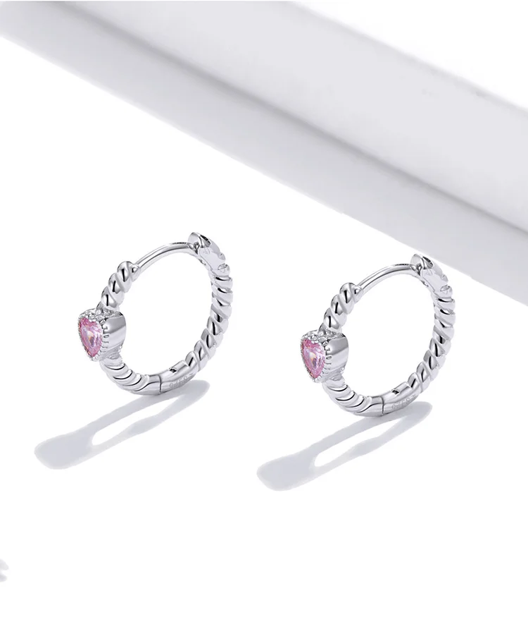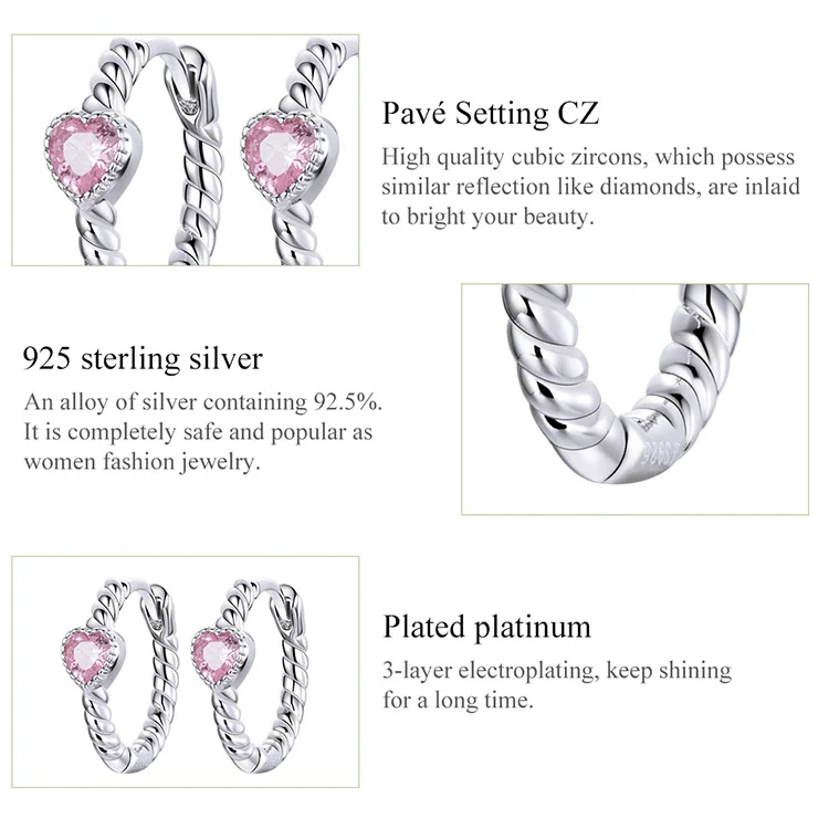 Женские серьги в виде сердца из серебра 925 пробы, с розовым серьги-кольца с цирконом