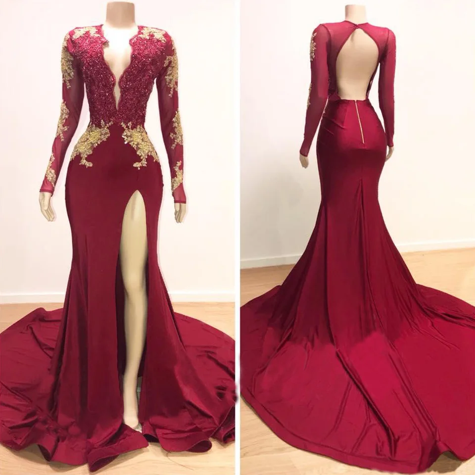 Женское вечернее платье с юбкой-годе, кружевное платье с аппликацией и длинным рукавом для выпускного вечера, платье на день рождения и Рождество, 2022