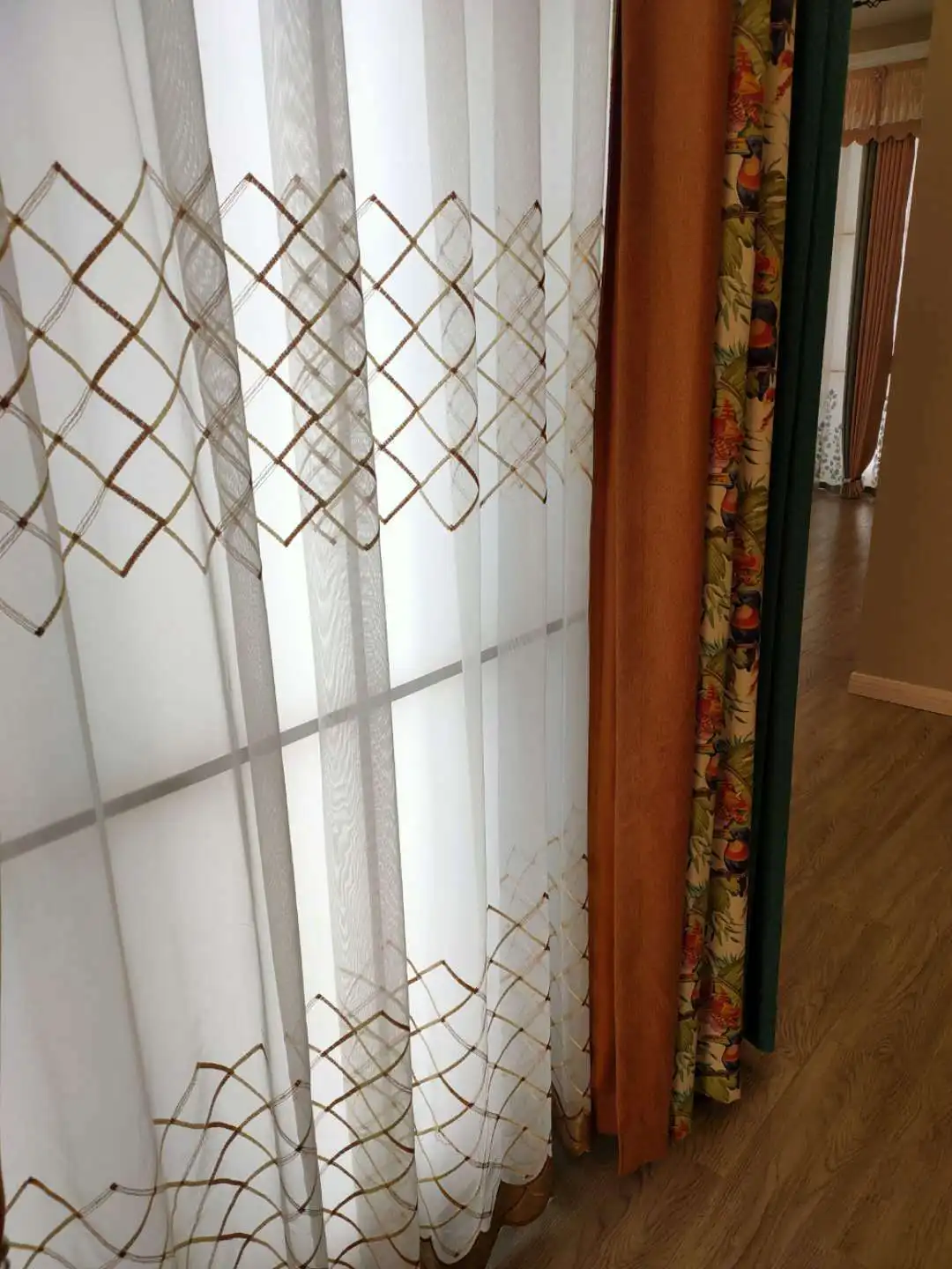 Шторы из тонкой ткани, с геометрическим узором, для гостиной, в европейском стиле