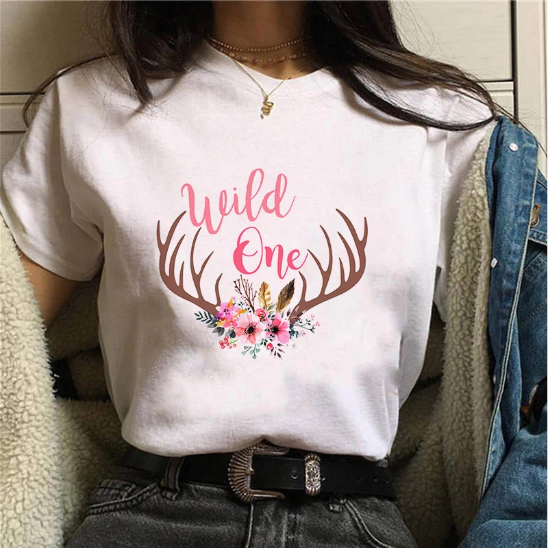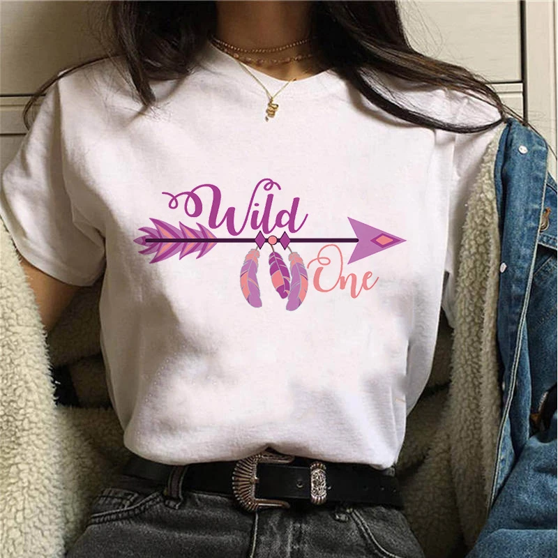 90s для девочек Harajuku футболка с надписью Wild One с принтом Футболка с О-образным вырезом, футболка с короткими рукавами для девочек; Сезон лето футболка модная футболка femme Mujer