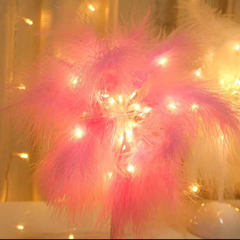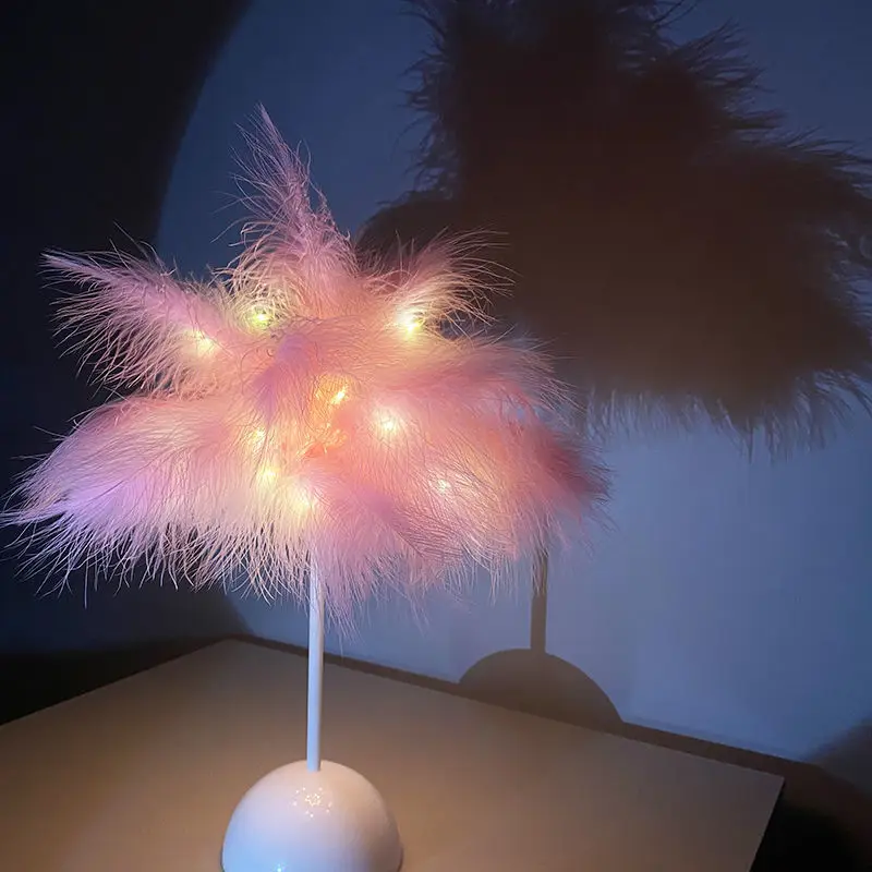 Креативный Ночной светильник с перьями, маленькая настольная лампа для детей, теплая прикроватная лампа для спальни, вечерние свадебные украшения