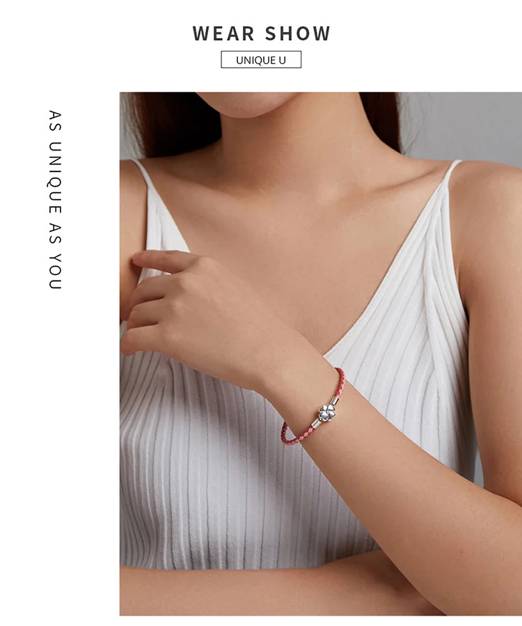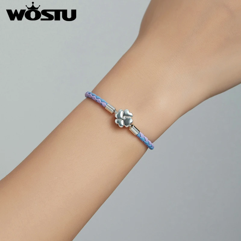 WOSTU 925 серьги-подвески с цветочным украшением из чистого серебра замок браслет двойной Цвета плетеный кожаный браслет веревочки, модное ювелирное изделие, CQB214
