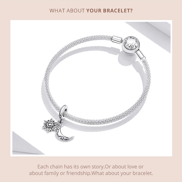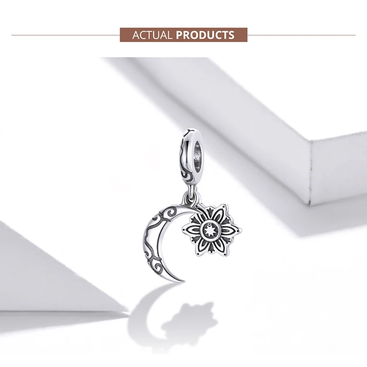 WOSTU 925 стерлингового серебра Подвески, Ретро стиль, лунных бусина лотоса и брелоком в форме звезды, подходят к оригинальному браслету ожерелье для женщин ювелирные изделия CQC1826