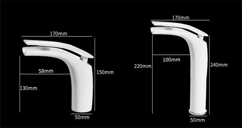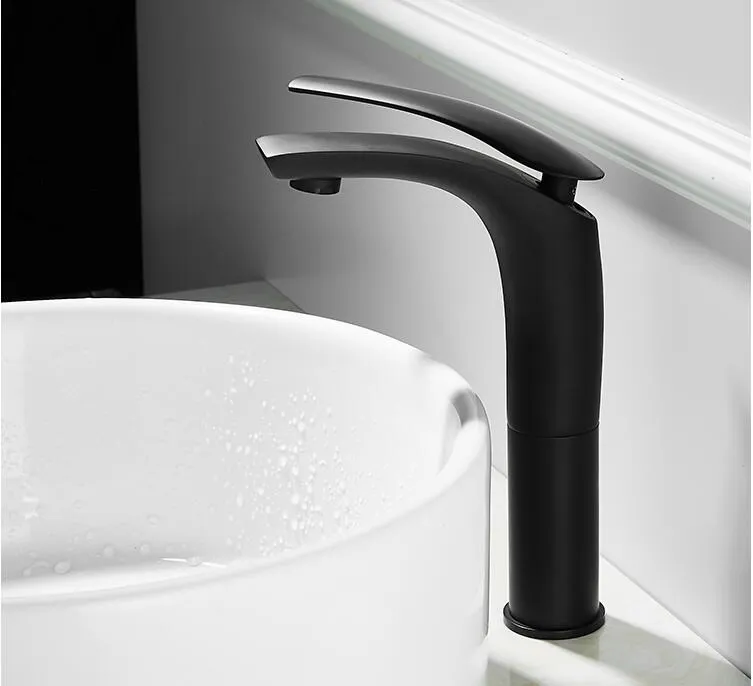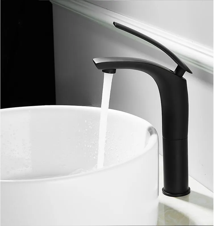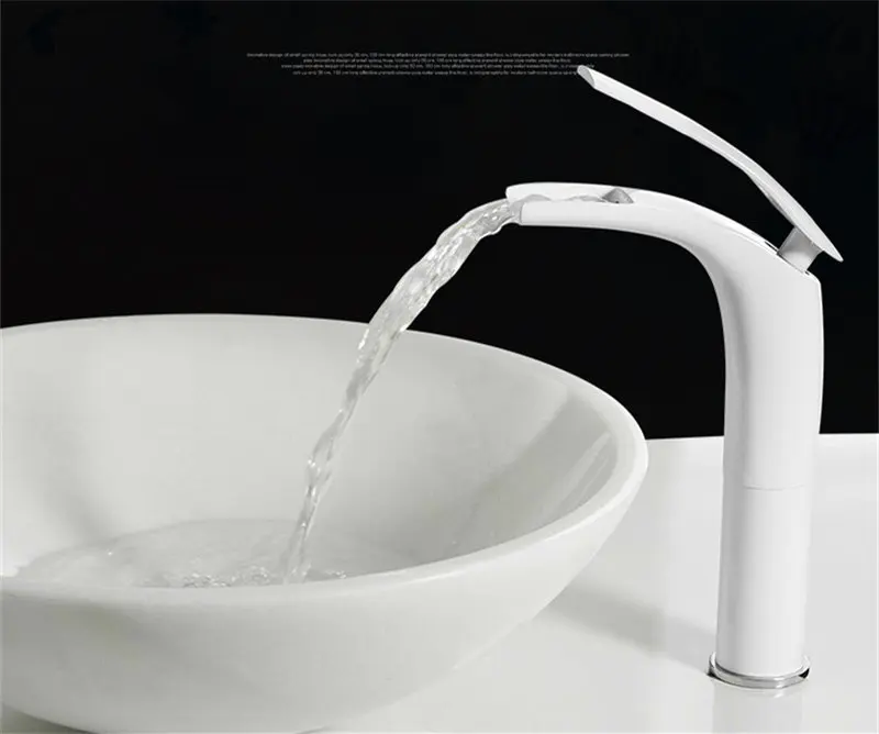Смеситель для раковины в ванную комнату, однотонный латунный кран для раковины, белый и черный цвет, водопад, холодная и горячая вода