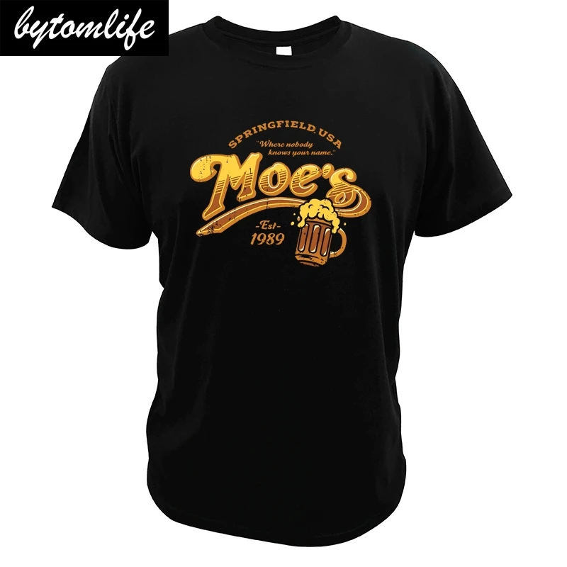 Футболка Moe's-персонаж-иероглиф-карикатура Симпсоны-мультяшная комедия Футболка 100% хлопок летние с коротким рукавом Европейский размер футболки для мужчин