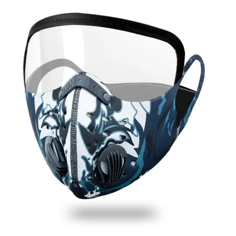 Эта маска имеет лицевой экран, который может предотвратить брызги слюны других людей на глаза.