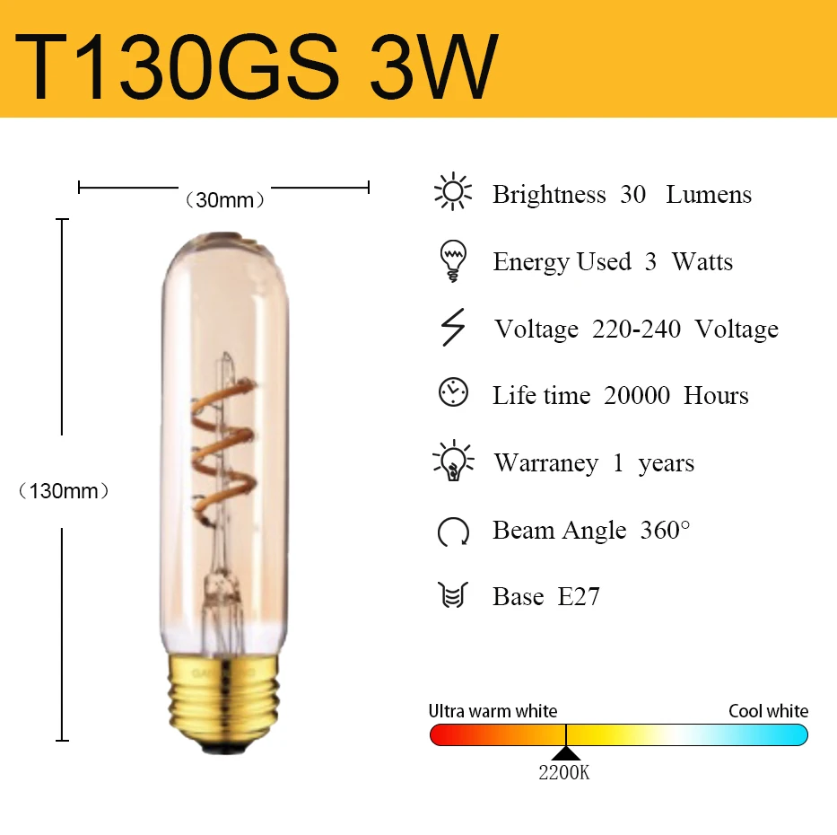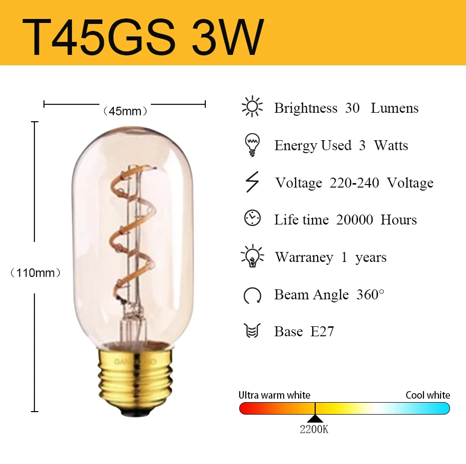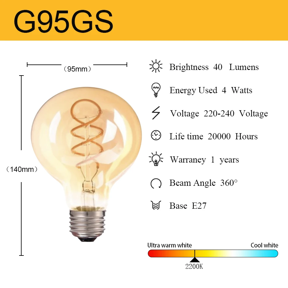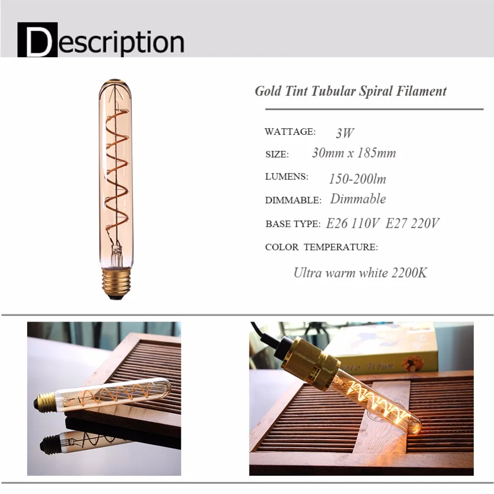 3 Вт 4 Вт Ретро Светодиодная лампа E27 с регулируемой яркостью спиральная нить Светодиодная лампа Эдисона для DIY подвесной светильник украшение для гостиной шар трубчатая лампа