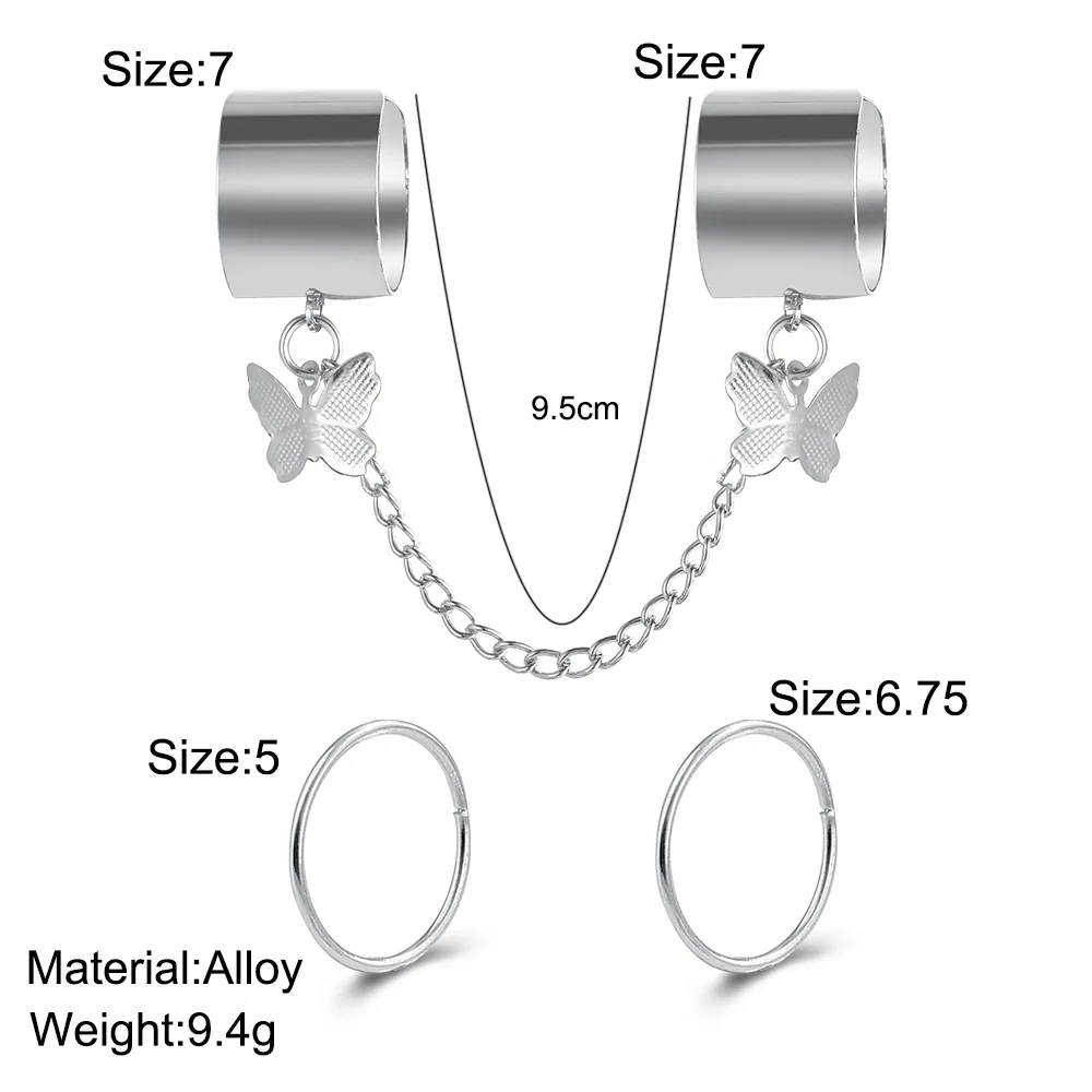 Набор женских регулируемых колец в виде бабочки, серебристого цвета
