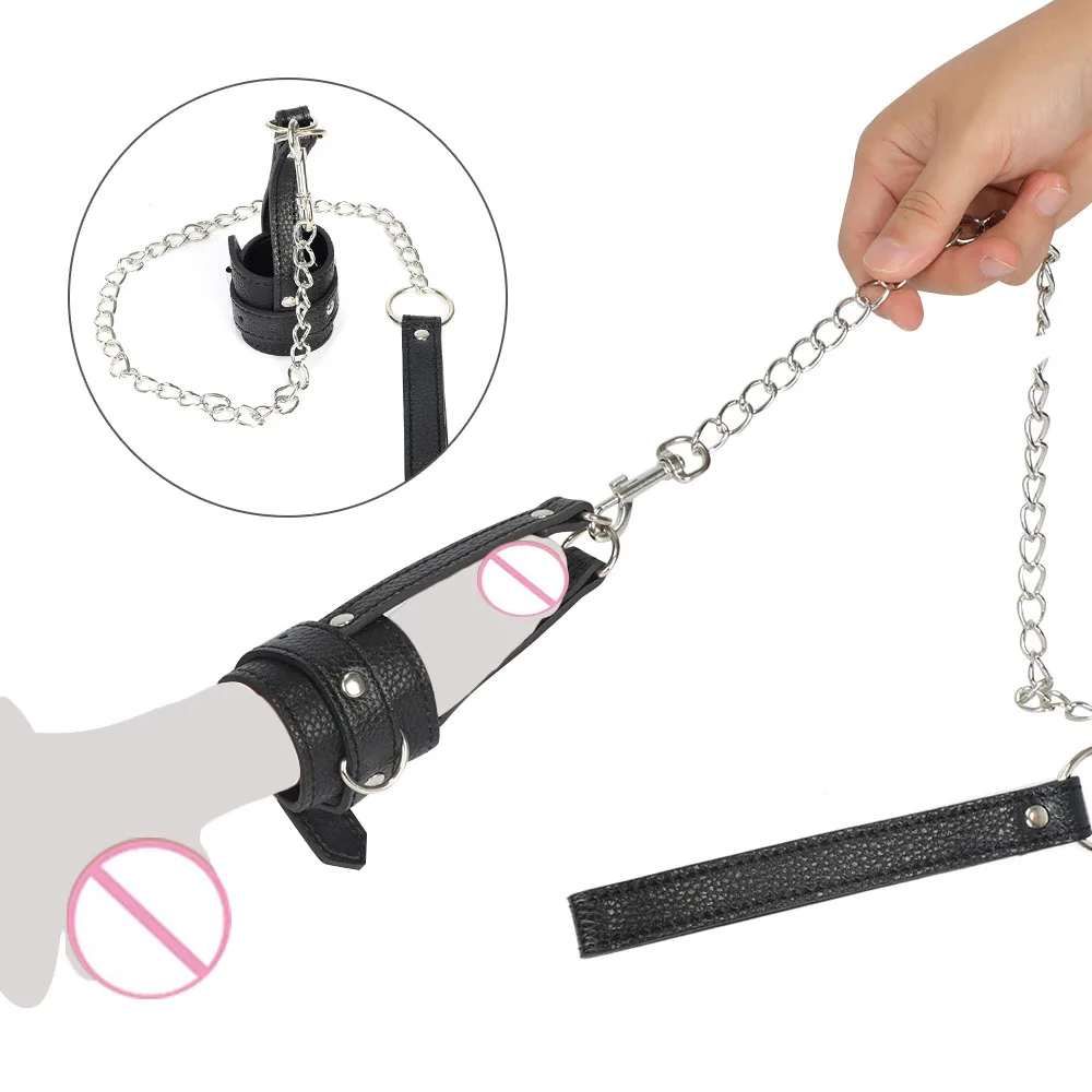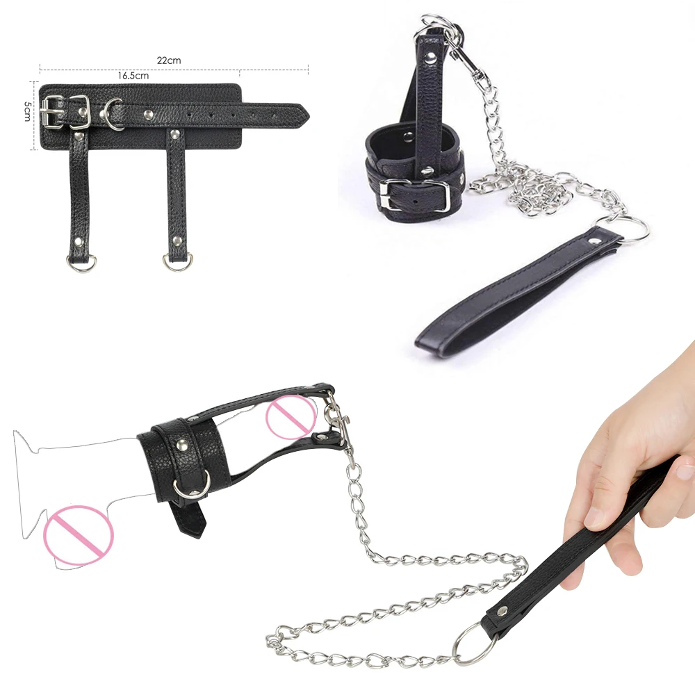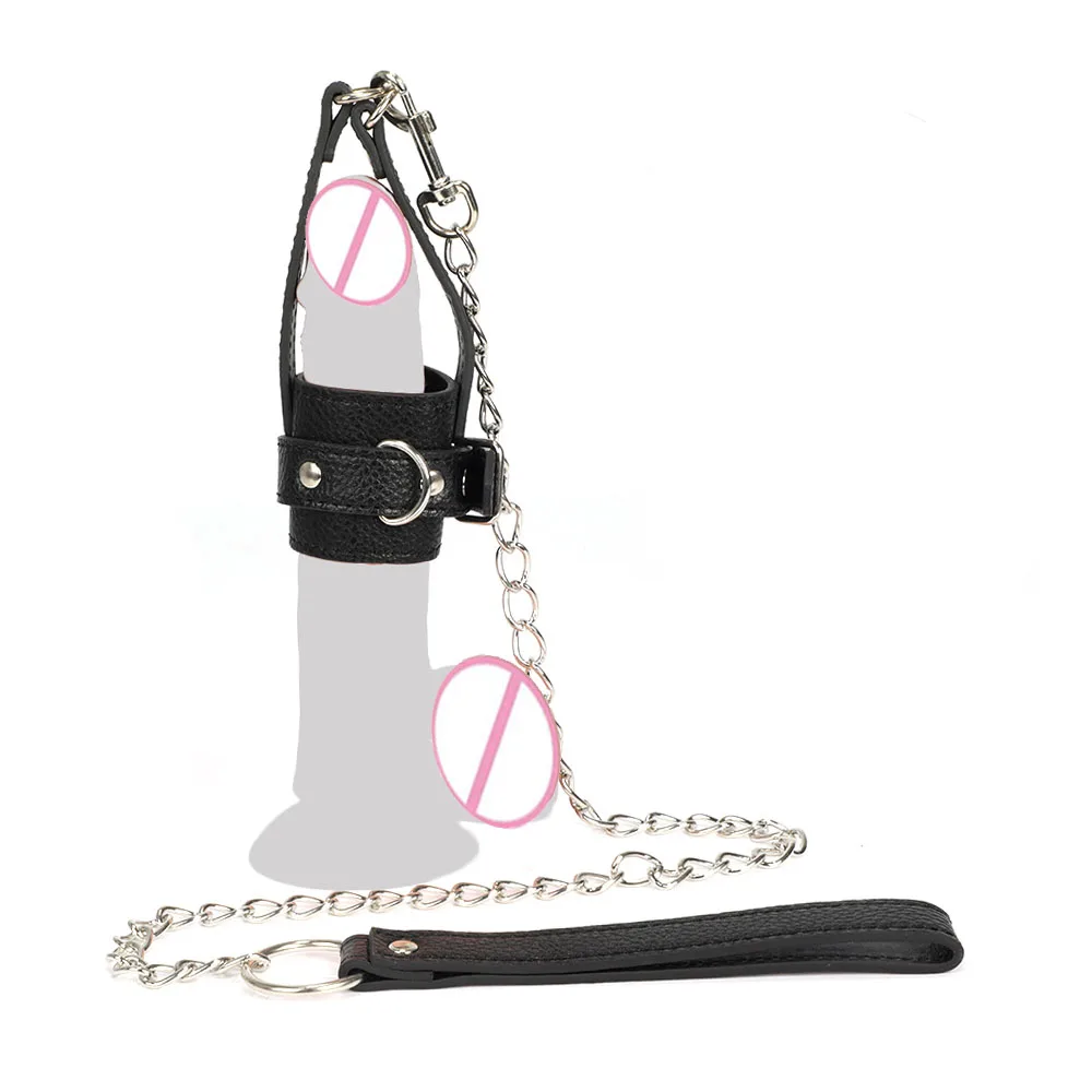 Мужское кольцо-рукав для пениса Эрекция секс-помощь цепь поводок кожаный петушок мяч носилки БДСМ Мужской целомудрие клетка секс-игрушка для взрослых