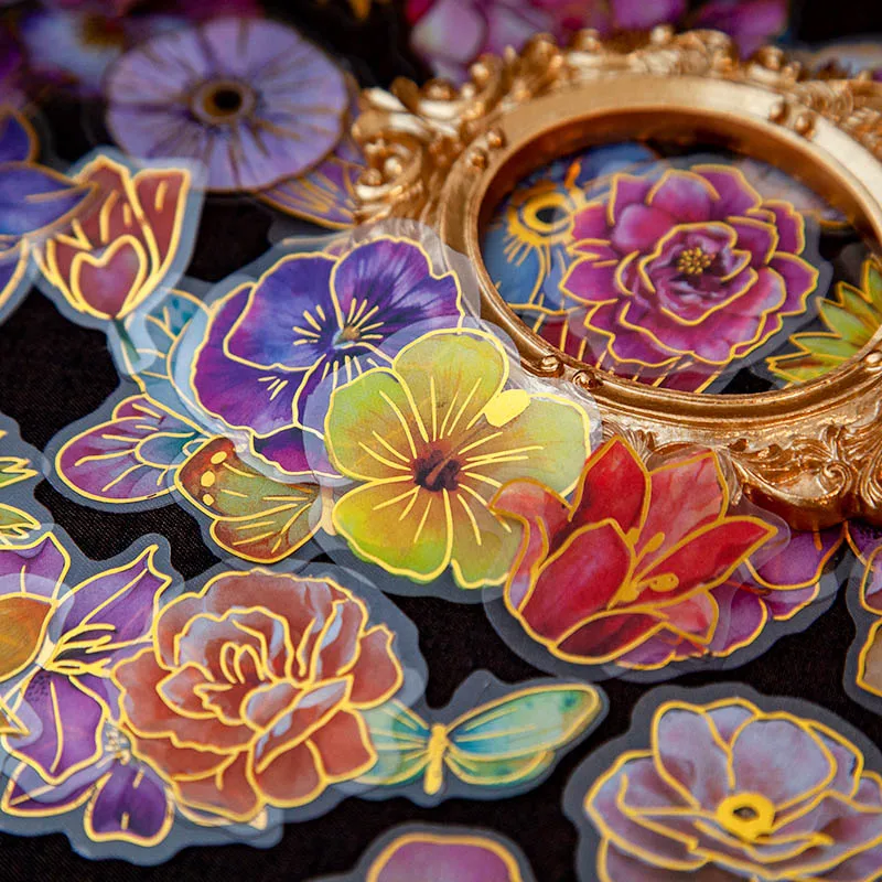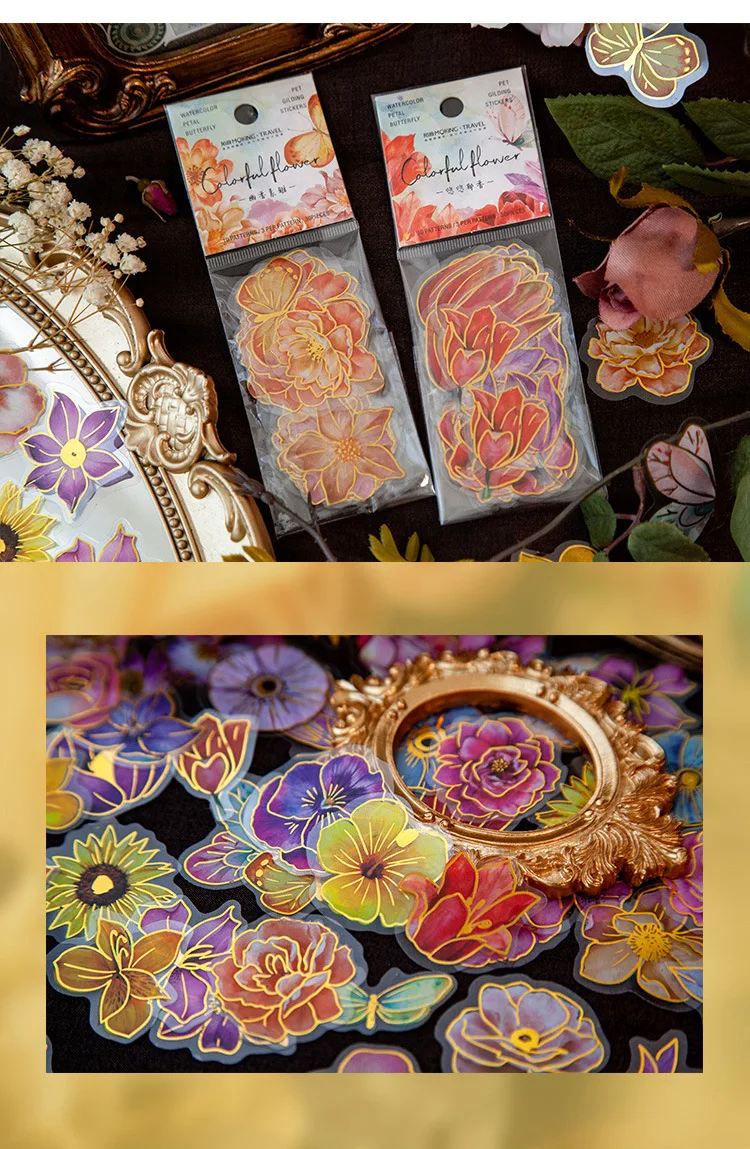30 листов Золотая фольга цветок стикер Ретро Бабочка PET стикер декоративная клейкая наклейка DIY дневник в стиле Скрапбукинг Канцтовары