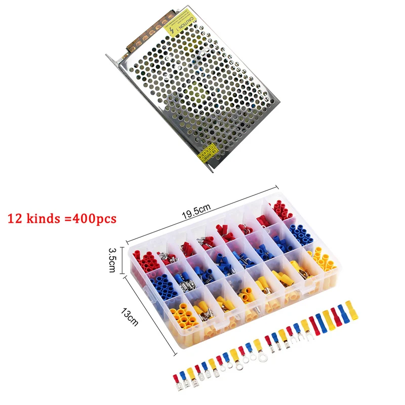 AC DC 220 В до 12 В 5A импульсивный источник питания Питание разъема электрического провода Ассорти изолированных кабельных наконечников: Батт Вилка Набор 15 Вид 400 шт