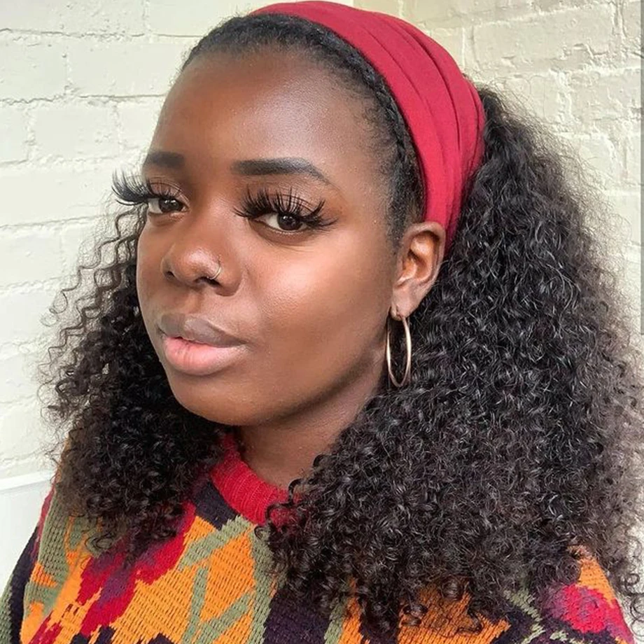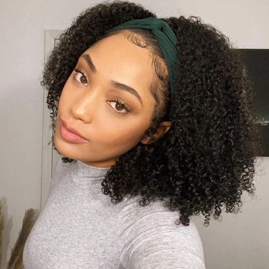 Афро кудрявый парик с головной повязкой человеческие волосы для женщин без клея дешевые короткие волосы боб шарф Джерри завиток дизайнер парик с головной повязкой s