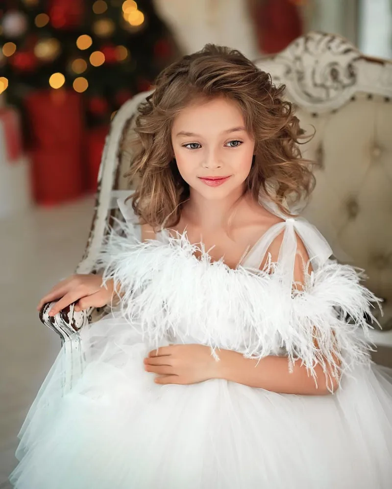 Новинка, белое Цветочное платье для девочек, бальное платье, кружев...