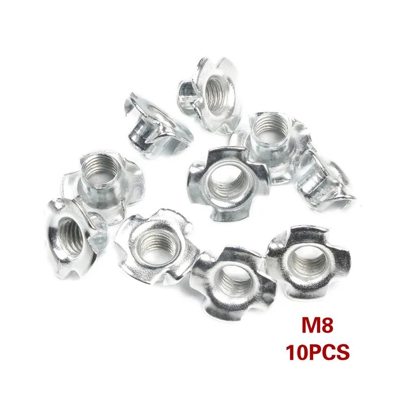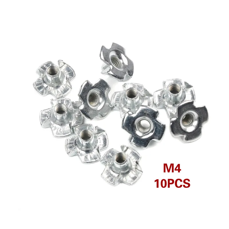 Оцинкованная гайка M3 M4, M5, M6, M8, M10, с четырьмя зажимами, гайка динамика, Т-образная, Т-образная, тройник, гайка, мебельная резьба, детали оборудования, 10 шт.