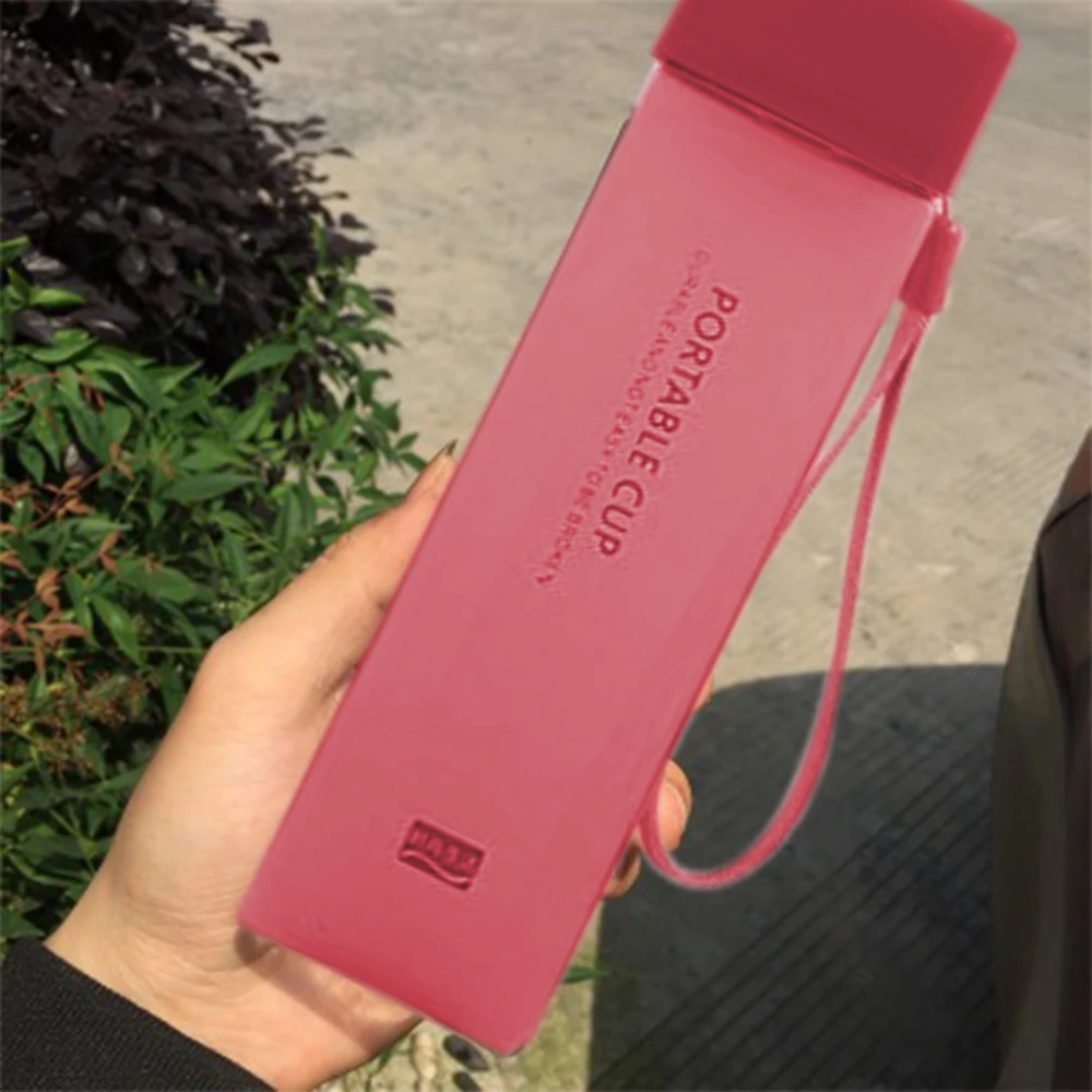 Уличная бутылка для воды 450 мл, прозрачная квадратная пластиковая матовая чашка для холодного сока, спортивная чашка для воды с портативной чашей для воды с веревкой для молока