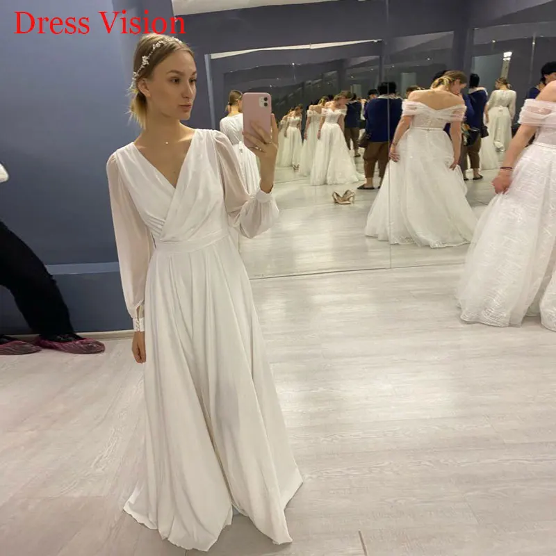 Пляжные чисто v-образным вырезом шифоновые Свадебные платья 2021 бл...