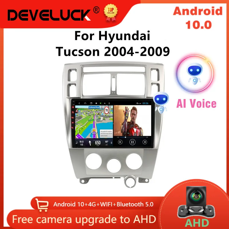 Автомобильный радиоприемник с голосовым ИИ-интерфейсом, Android 10, для Hyundai Tucson 2004-2009, мультимедийный видеоплеер, RDS, DSP, GPS-навигация, 2 Din, Wi-Fi, головное устройство