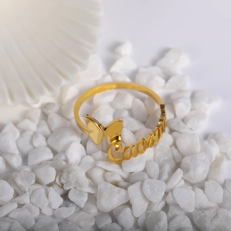 Индивидуальные персонализированные кольца с именем бабочки регулируемые кольца из нержавеющей стали Свадебные Кольца для женщин ювелирные изделия Уникальные подарки подружки невесты