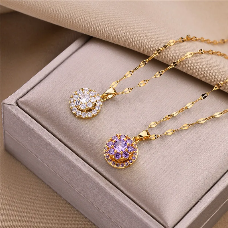 Корейская мода милый повезло с украшением в виде кристаллов кулон ожерелье для женщин Свадебные ювелирные изделия из нержавеющей стали женские вечерние ожерелье вокруг шеи