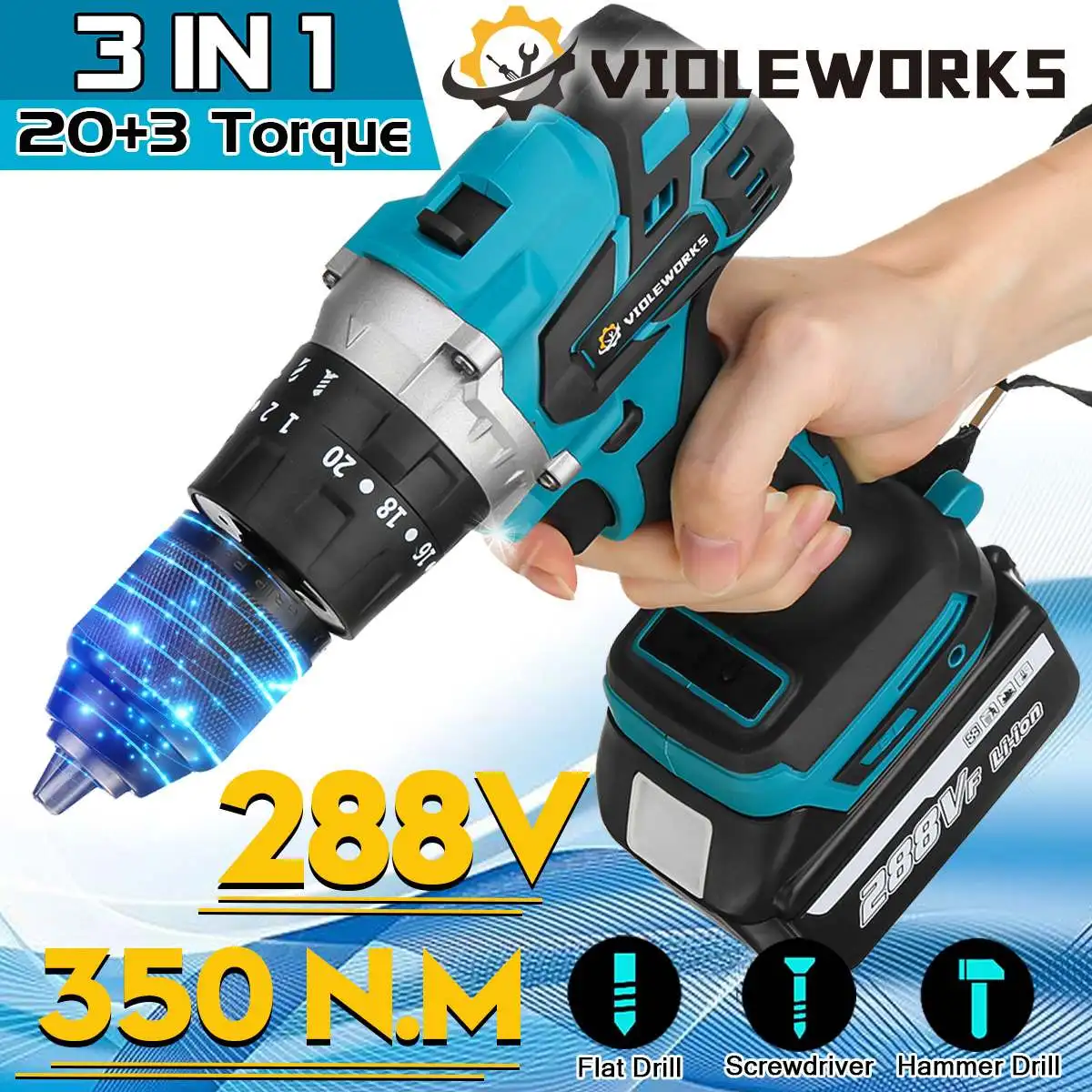 3 в 1 288VF Аккумуляторная дрель электрическая ударная отвертка Ударная дрель 20 + 3 знака после крутящий момент 13 мм для Makita 18V БатареяХарактеристики:Бренд: VIOLEWORKSНазвание: Беспроводная Дрель 288VFМотор: бесщеточный