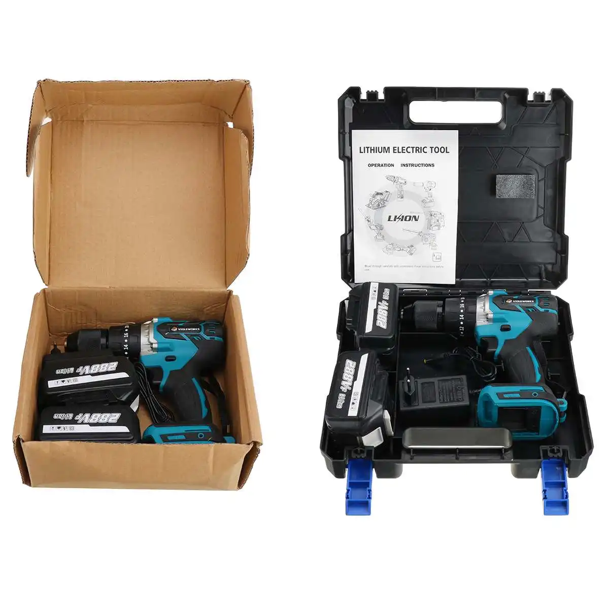Замена Тип батареи: также для Makita 18V аккумуляторная батареяКрутящий момент: 350 Н. МБез скорости нагрузки: 4000 об/минРазмер патрона: 1/2 "(13 мм)Настройка сцепления: 20 + 3Аккумулятор: 19800 мАч3-в-1 Функция: бурильный молоток, отвертка, плоское сверлоОсобенности:-Эргономичная ручка обеспечивает идеальный баланс и контроль инструмента.-Функция сверления молотка 3 в 1/функция отвертки/функция плоского сверла.-Светодиодный Светильник обеспечивает освещение в темных местах во время работы.-Питание от литий-ионной аккумуляторной батареи обеспечивает более длительное время работы и большую мощность.-Переключатель вперед/назад/замок, поддержка движения вперед/назад и безопасная блокировка.-20 + 3 режима, обеспечивает 20 режимов крутящего момента и 3 режима сверления Для высокоточной работы.Посылка включает в себя: (по вашему выбору)Рисунок 1:1 х аккумуляторная ударная дрельАккумулятор-1 шт.Зарядное устройство-1 шт.1 х Руководство по эксплуатации1 х пластиковая коробкаРисунок 2:1 х аккумуляторная ударная дрель2 батареиЗарядное устройство-1 шт.1 х Руководство по эксплуатации1 х пластиковая коробкаРисунок 3:1 х аккумуляторная ударная дрельАккумулятор-1 шт.Зарядное устройство-1 шт.1 х Руководство по эксплуатации1 x картонная коробкаРисунок 4:1 х аккумуляторная ударная дрель2 батареиЗарядное устройство-1 шт.1 х Руководство по эксплуатации1 x картонная коробка