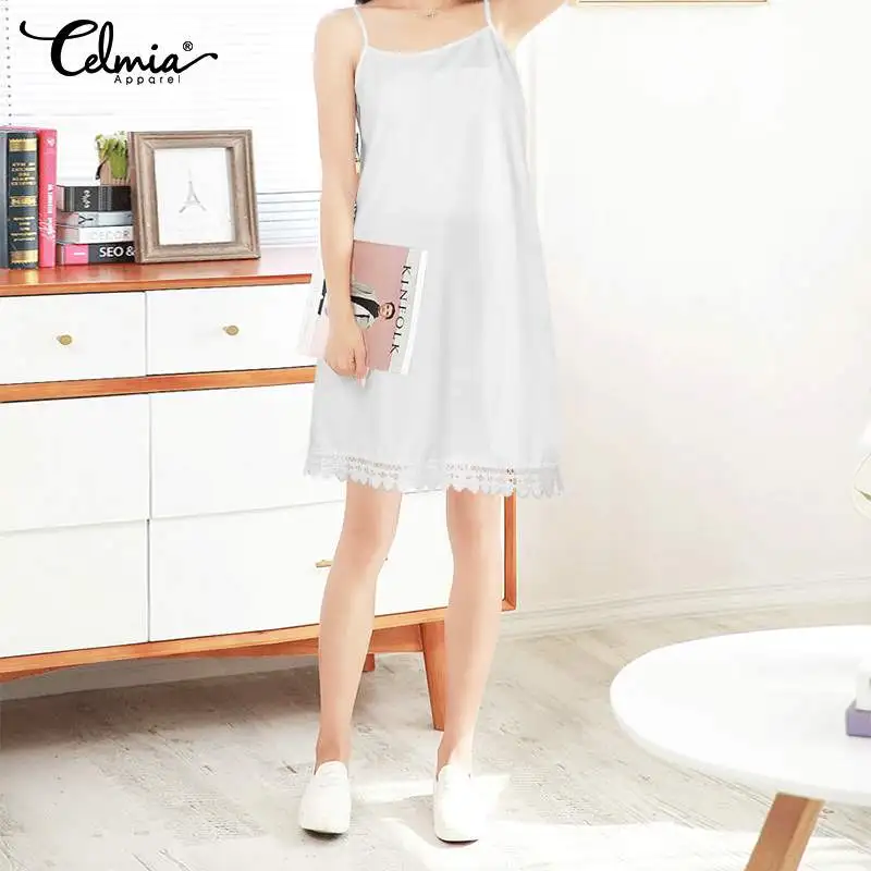 Летнее платье Celmia 2021, женское сексуальное кружевное мини-платье на бретелях-спагетти, повседневное свободное однотонное пляжное платье без рукавов