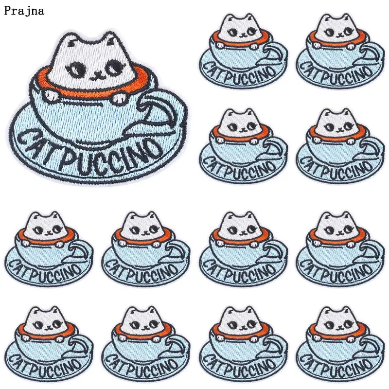 Prajna 10 шт., нашивки с милым котом на одежду, нашивки с вышивкой утюгом для одежды, термоклеящиеся нашивки, одежда, Детская футболка