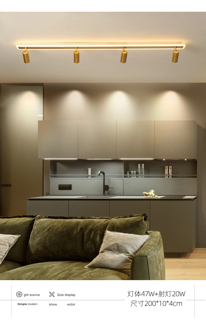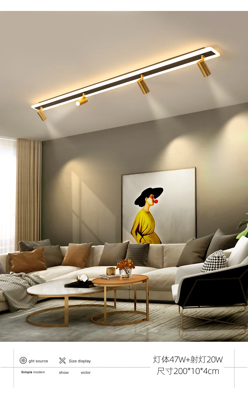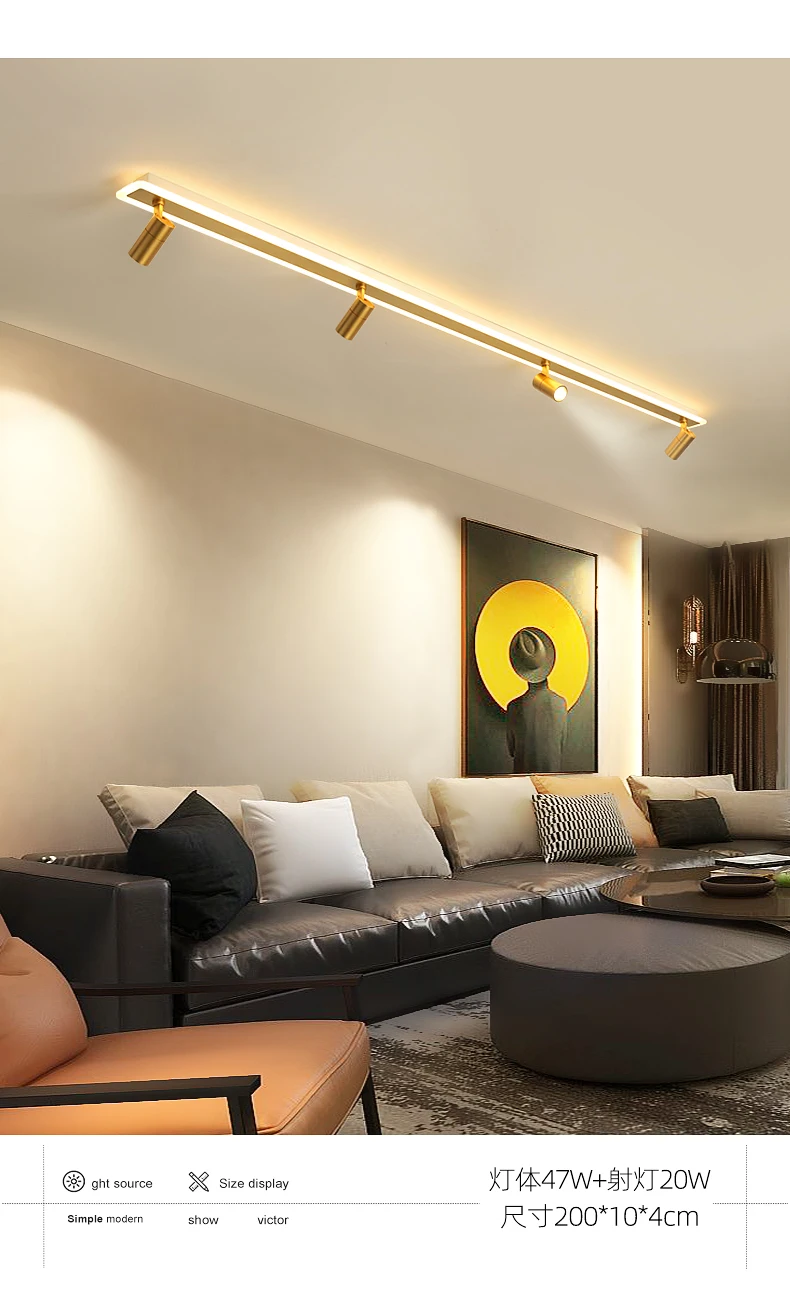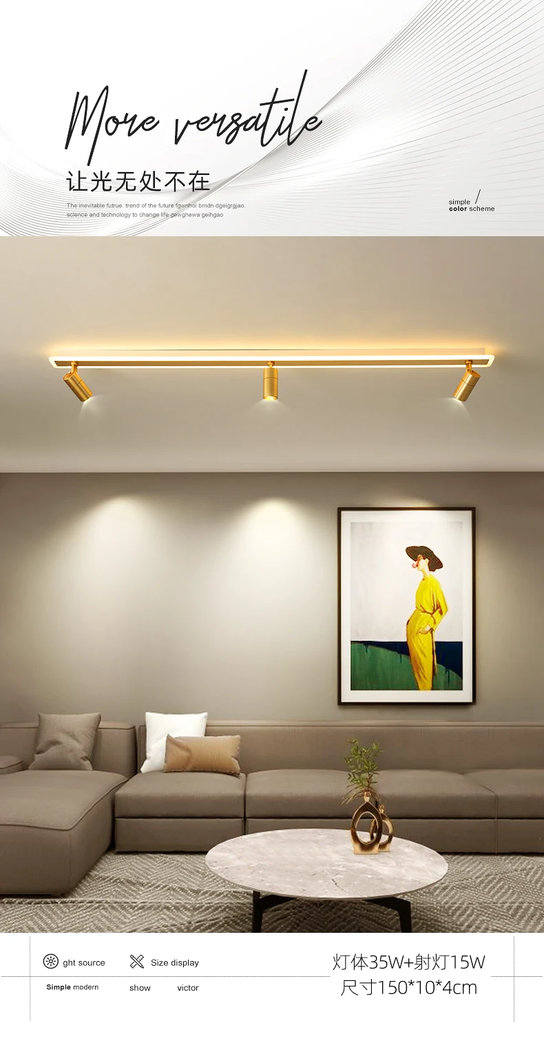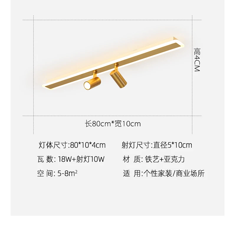 L80x10x4cm 18w + 10wL100x10x4cm 23w + 10wL120x10x4cm 28w + 15wL150x10x4cm 35w + 15wL200x10x4cm 47w + 20wПримечание: Точечный светильник, только теплый светильник3 цвета изменчивы, включая теплый светильник, белый светильник и естественный светильник.