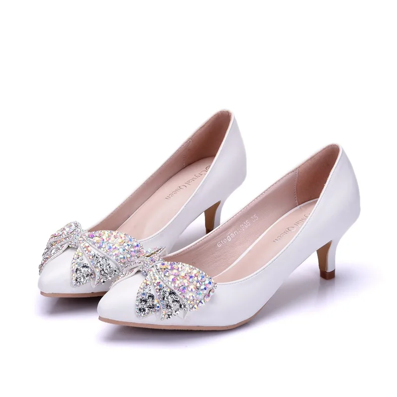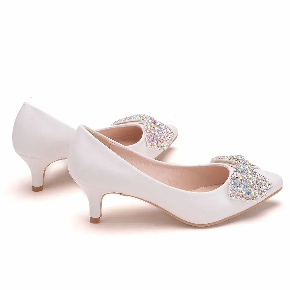 2021 новая белая женская обувь из искусственной кожи; Тонкие туфли; Пикантные туфли на высоком каблуке; Большие Размеры стразы, с острым носком, для подружки невесты, для свадебных торжеств; Туфли Размеры; Большие размеры 34-43 H0078