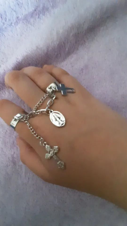 Женское серебряное кольцо в стиле ретро панк с крестом цепочка на п...