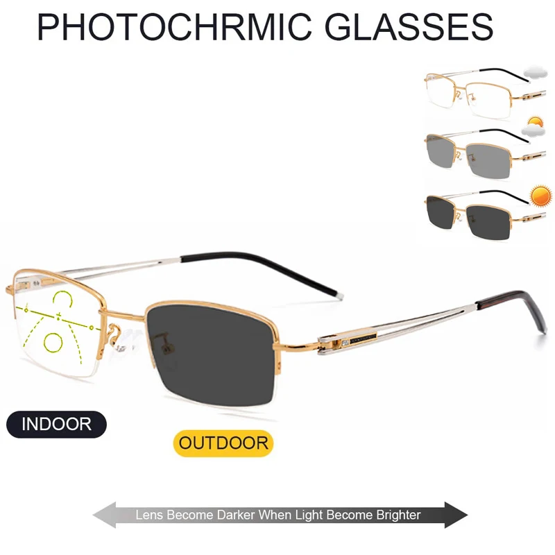 Очки для чтения Хамелеон для мужчин и женщин, многофокальные прогрессивные с фотохромными линзами с металлической оправой для дальнозоркости, 2,5