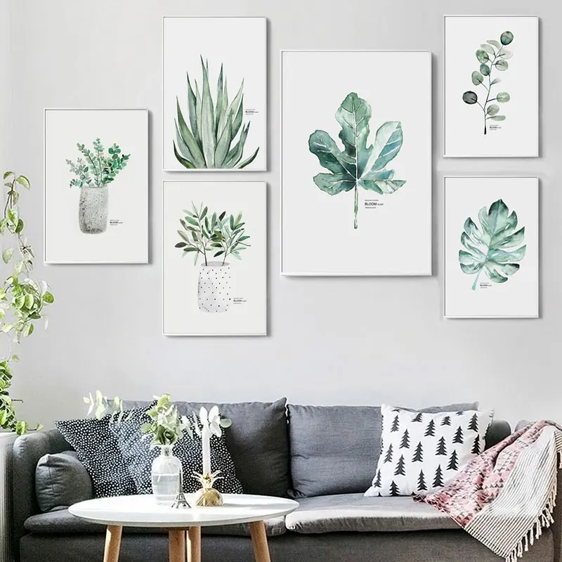 Зеленые растения, листья, настенная печать, фотообои и плакаты для гостиной, картины, домашний декор